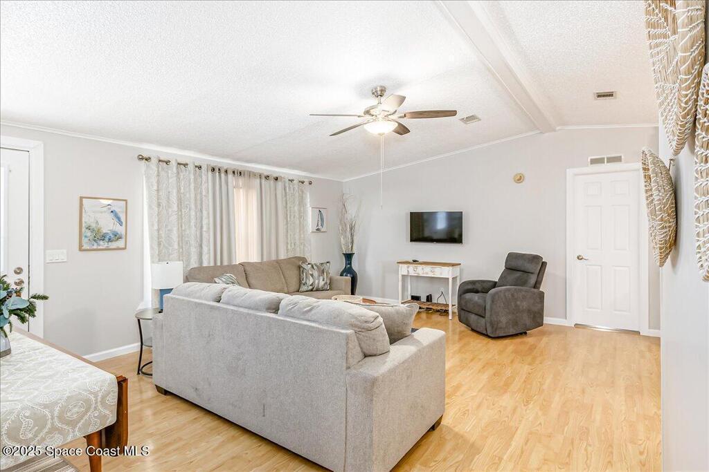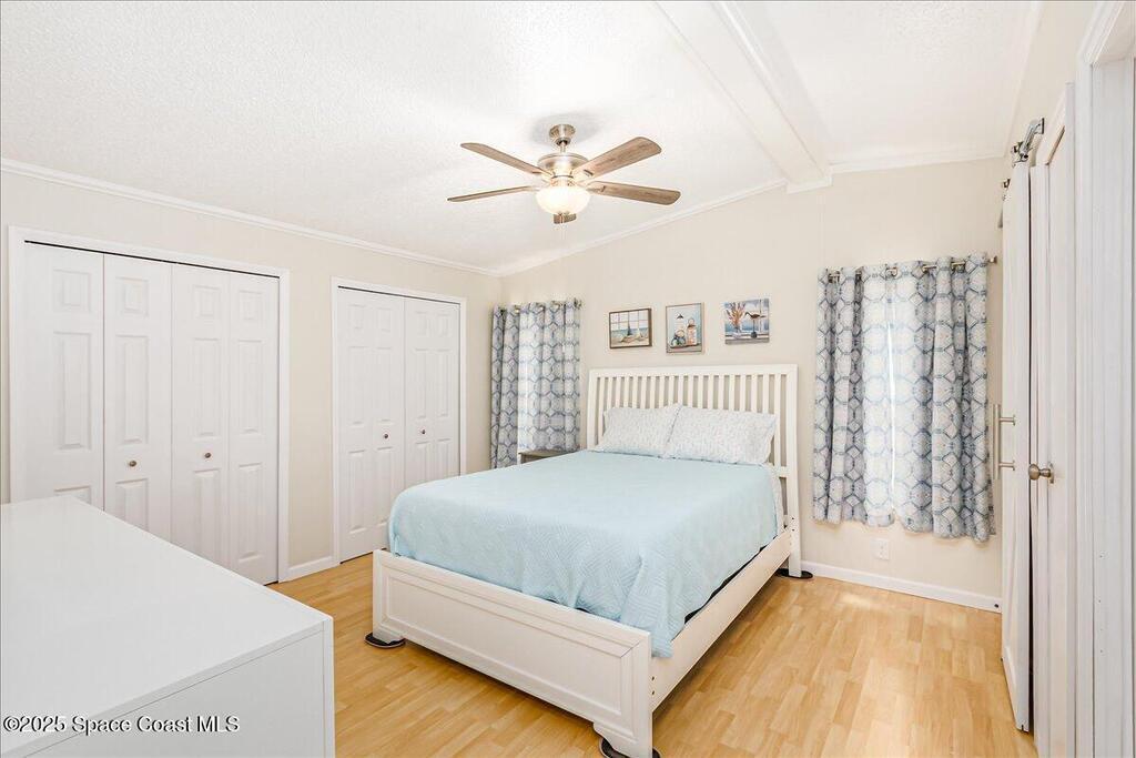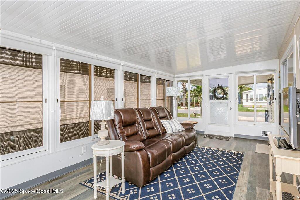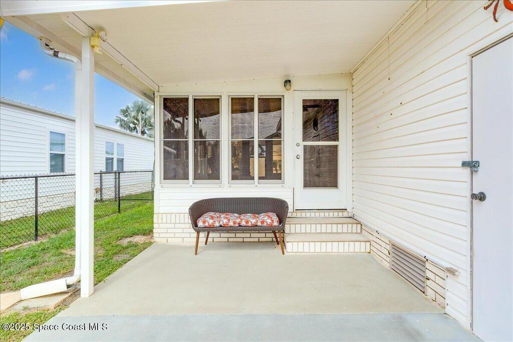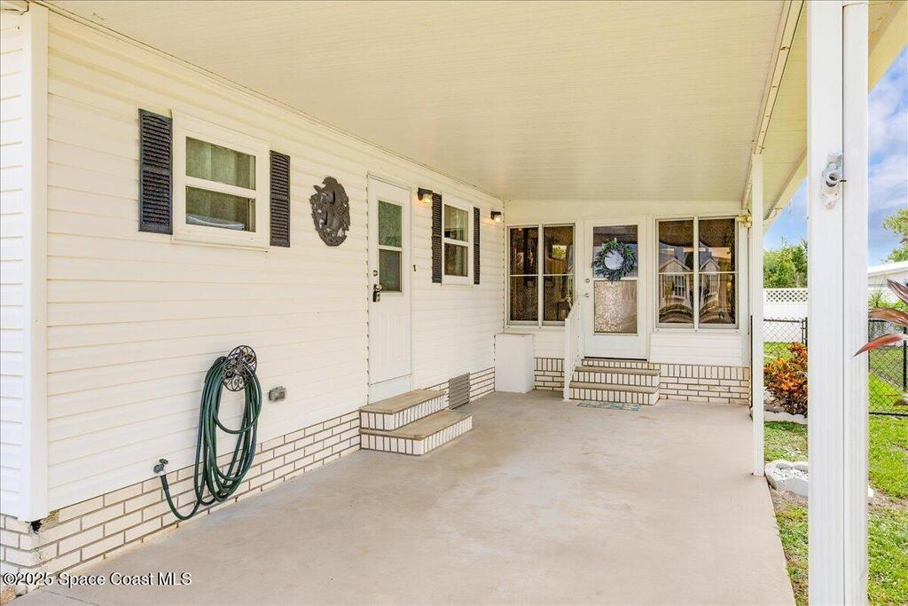 Beautifully maintained and updated 2-bedroom, 2-bathroom home featuring a spacious split floor plan. This charming residence has stainless steel appliances, granite countertops, and a tiled walk in shower in the owner's suite. Enjoy the air-conditioned Florida room, perfect for relaxing or entertaining. Recently installed impact-rated windows provide added security and peace of mind. The home boasts a new metal roof and a new A/C system for worry-free living (warranties are transferrable). It is located within walking distance to one of the three pools. Enjoy all the amenities Barefoot Bay has to offer and make this lovely home yours today!Also, the home comes tastefully furnished. All of the furniture items have been bought within the last two years and are in excellent condition!