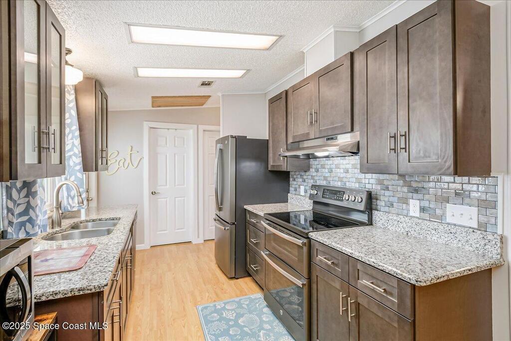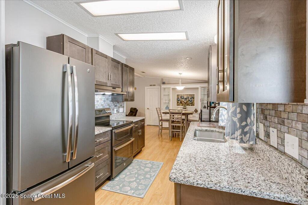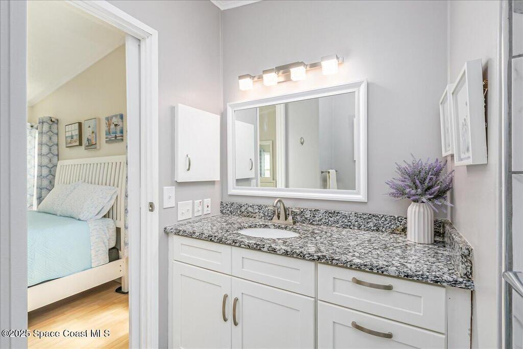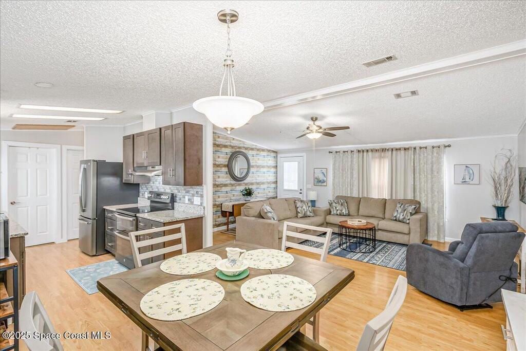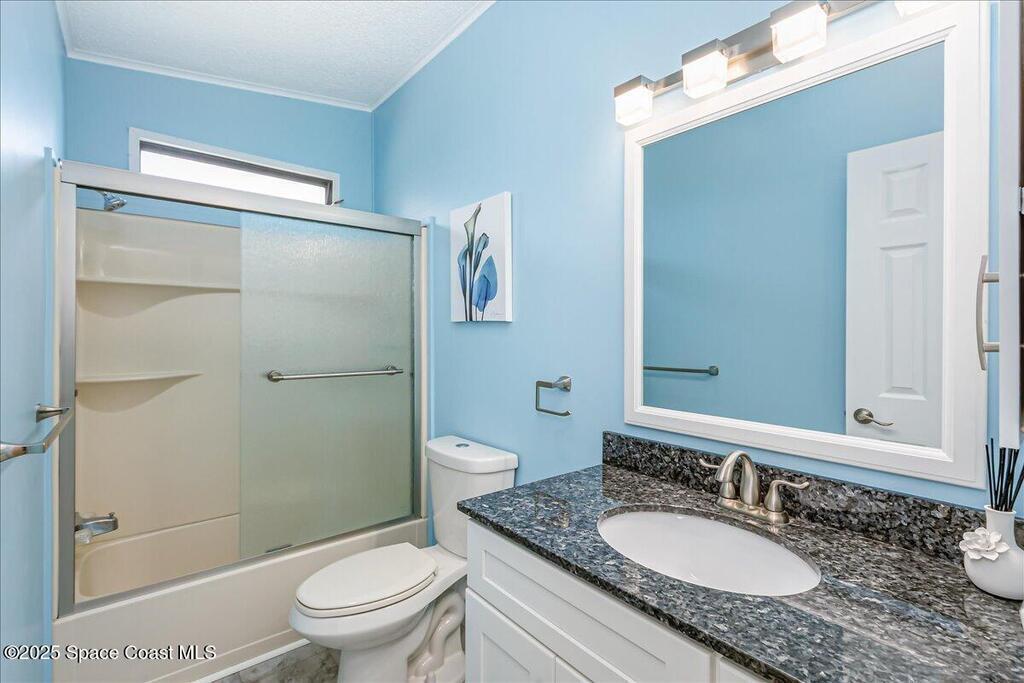 Beautifully maintained and updated 2-bedroom, 2-bathroom home featuring a spacious split floor plan. This charming residence has stainless steel appliances, granite countertops, and a tiled walk in shower in the owner's suite. Enjoy the air-conditioned Florida room, perfect for relaxing or entertaining. Recently installed impact-rated windows provide added security and peace of mind. The home boasts a new metal roof and a new A/C system for worry-free living (warranties are transferrable). It is located within walking distance to one of the three pools. Enjoy all the amenities Barefoot Bay has to offer and make this lovely home yours today!Also, the home comes tastefully furnished. All of the furniture items have been bought within the last two years and are in excellent condition!
