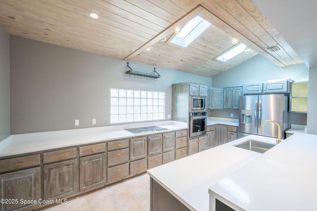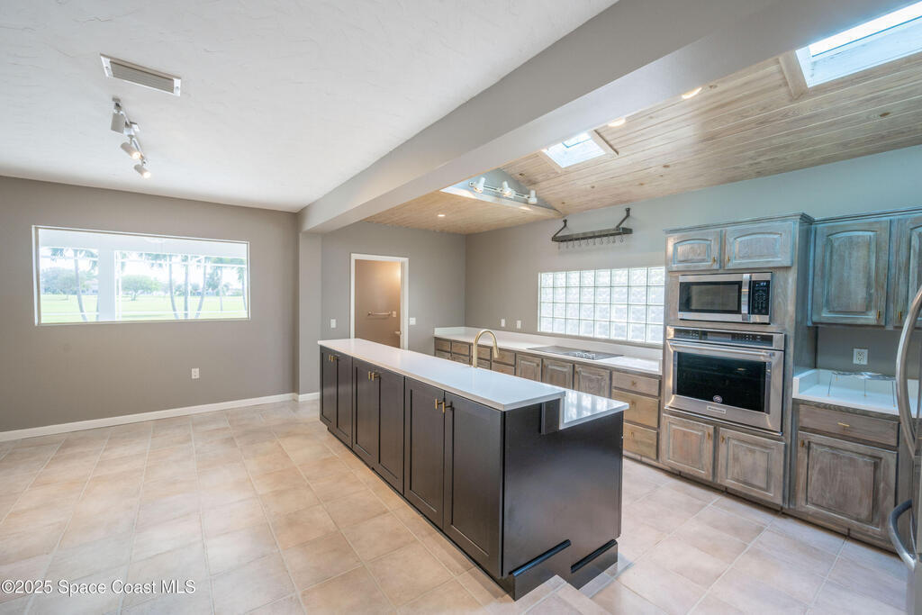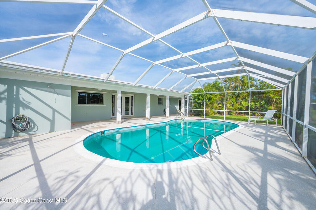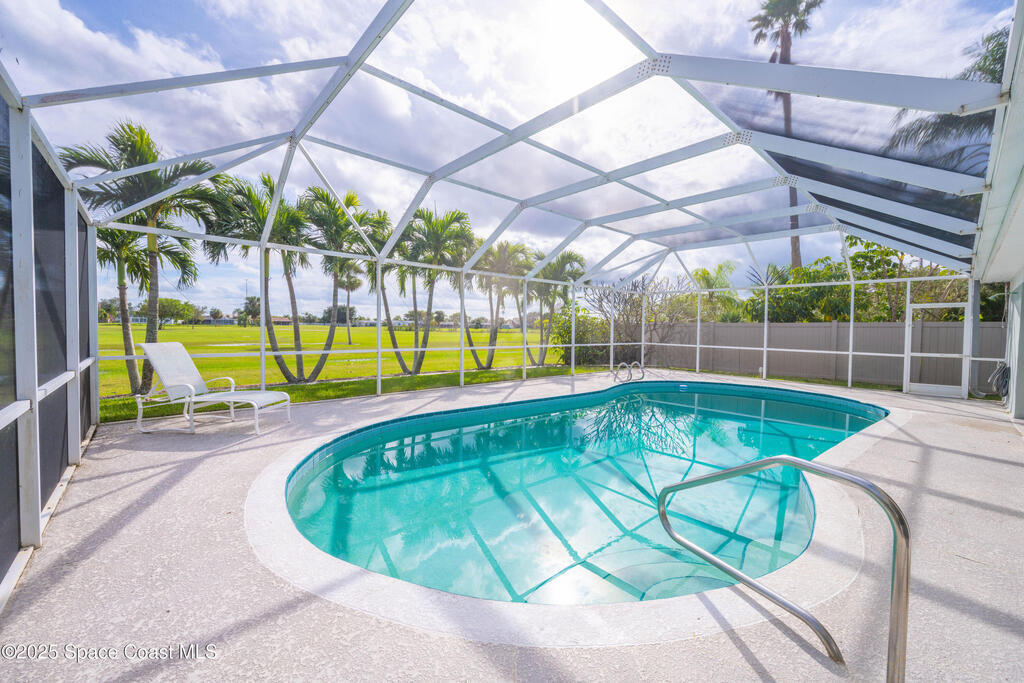 Golf course pool home in a highly desirable neighborhood. Large lot and open views of golf course in this serene, sought-after Country Club subdivision. Screened, private pool with large deck and lanai. Pool room for storage of pool toys. Short drive to the beach but far enough away to enjoy a peaceful lifestyle. Newer roof, wind rated garage door, and A/C in 2021. Newer luxury vinyl plank flooring in the bedrooms and ceramic tile throughout the rest of the house. Quartz countertops and newer kitchen island, newer stainless steel appliances and cooktop. Double sided coquina stone fireplace, skylights in the master bathroom and kitchen. Tongue and groove vaulted wood ceiling in kitchen and on the porch. Large, oversized windows providing light in every room. Large laundry room with storage. Short distance to schools and public recreational facilities including golf, tennis, olympic size swimming pool, and parks. Underground utilities. The best of living in Cocoa Beach