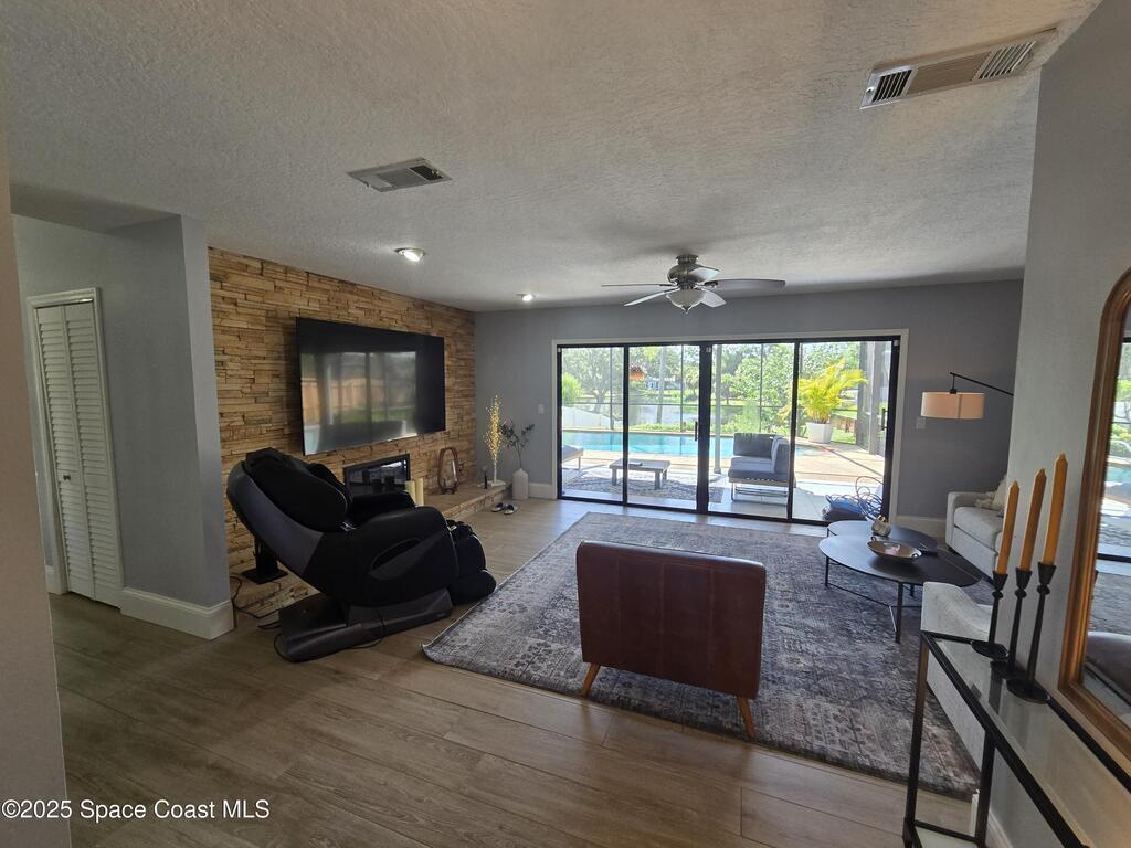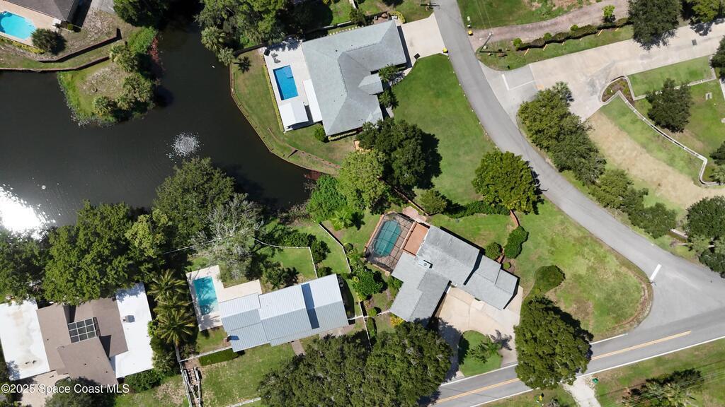 Peaceful Merritt Island Gem - 4BR plus office space and 3 Bathroom on Large Corner Lot with Salt Water Pool & Lake ViewThis spacious home offers 4 bedrooms, 3 baths, and a large second-floor balcony perfect for morning coffee or sunset views. Set on an expansive corner lot shaded by beautiful mature trees, it provides a rare blend of privacy and charm. Enjoy serene lake views and a sparkling private pool for relaxing or entertaining. Inside, multiple living areas offer comfort and flexibility for any lifestyle. Upgraded kitchen & bathrooms. Stunning fireplace and wall work .House offers a Workshop with AC as well as RV Parking .This is truly a piece of paradise!!! Located just minutes from beaches, shopping, dining, and Kennedy Space Center, this home is a true retreat in the heart of the Space Coast.