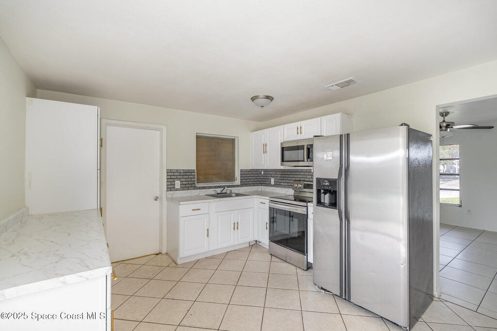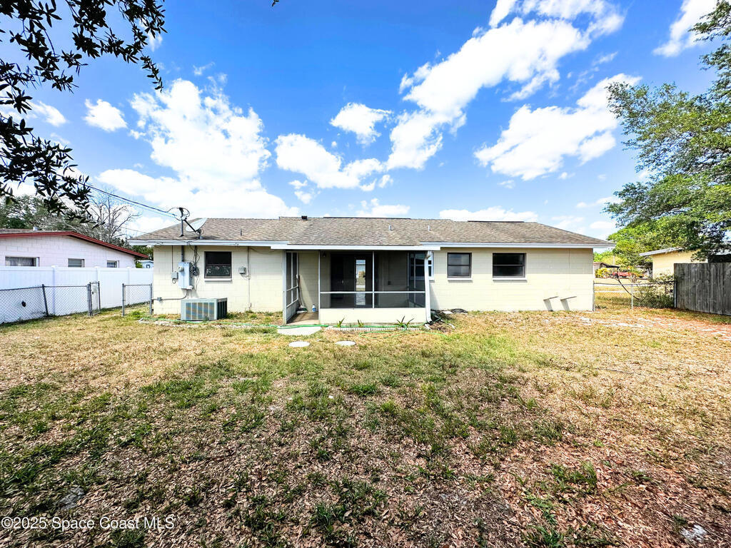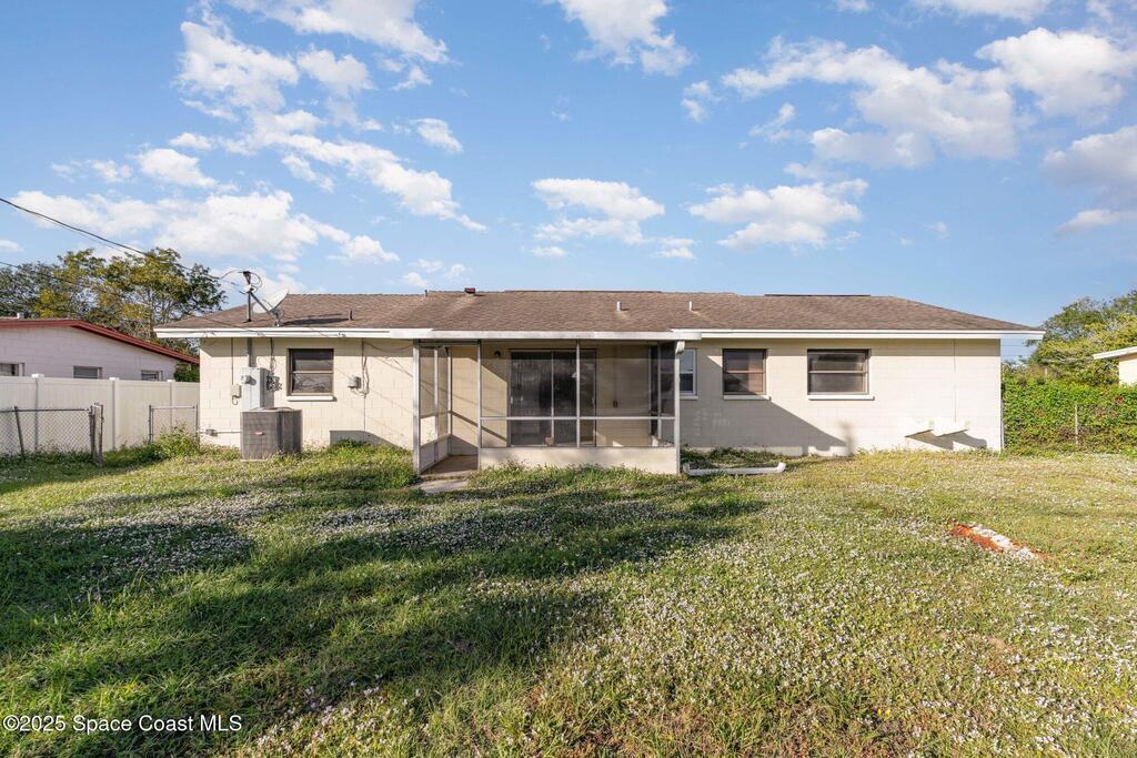 Welcome home! This solid concrete block 3 bedroom, 2 bath home features renovated kitchen and bathrooms bringing a fresh and modern feel. All tile and laminate flooring throughout means there's no carpet to worry about. You'll love relaxing on the screened-in back porch and appreciate the added convenience of a utility room with indoor laundry and a brand-new HVAC system giving you peace of mind and energy efficiency. Perfectly located for work, play, and convenience--just 18 minutes to Kennedy Space Center, 40 minutes to the sandy shores of world-famous Cocoa Beach, 8 minutes to shopping and dining at Titus Landing, and only 7 minutes to I-95 for an easy commute.This home blends comfort, updates, and location--all at once!