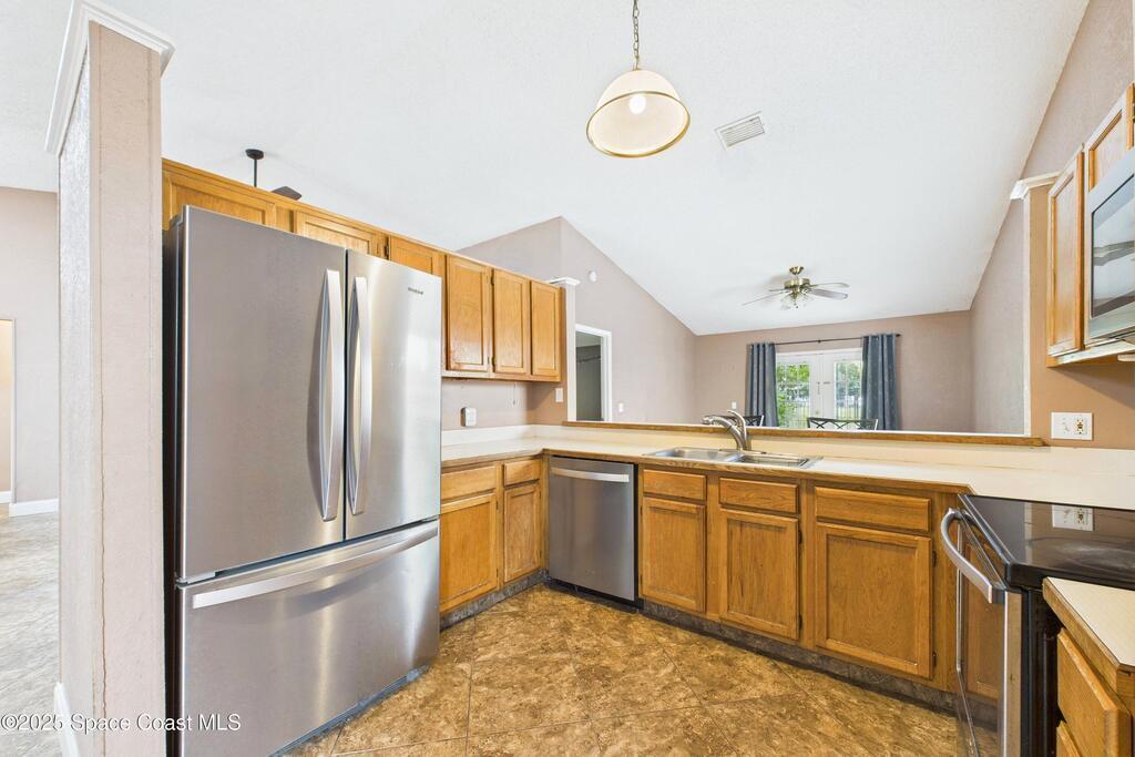 Welcome to this waterfront 3-bedroom, 2-bath home in the peaceful Meadow Cove subdivision. Featuring cathedral ceilings and a spacious split floor plan, this home offers plenty of room for family living with a living room, dining area, family room, and eat-in kitchen. Enjoy relaxing on the screened-in back porch overlooking the water or let the kids and pets play in the large fenced yard. With a newer roof (2020), A/C (2019), and stainless steel appliances (2017), this sturdy home has great bones and is ready for your personal touch. A wonderful opportunity to make it your own!