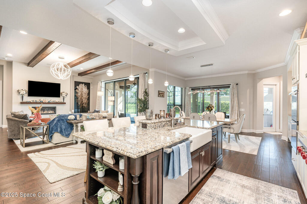 Welcome to one of the newest and most distinguished homes in the coveted Summer Lakes community. Built in 2013 by renowned builder, this stunning single-story residence offers 3,288 square feet of thoughtfully designed luxury living.Step through grand double wooden front doors into a home that immediately impresses with soaring ceilings, exposed wood beams, and rich hardwood flooring throughout. The spacious open floor plan includes 4 bedrooms, 3 beautifully appointed bathrooms, and an oversized office -- perfect for working remotely, hosting clients, or creating a private retreat.At the heart of the home is a chef's dream kitchen, featuring an oversized granite island, Miele built-in double ovens, a Wolf gas cooktop, built-in microwave, farmhouse sink, and bar seating - all surrounded by elegant finishes and top-of-the-line appliances.