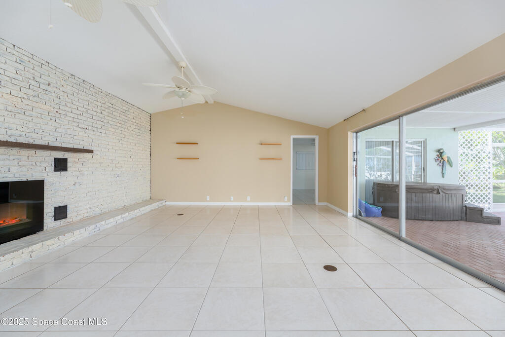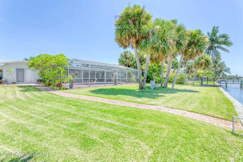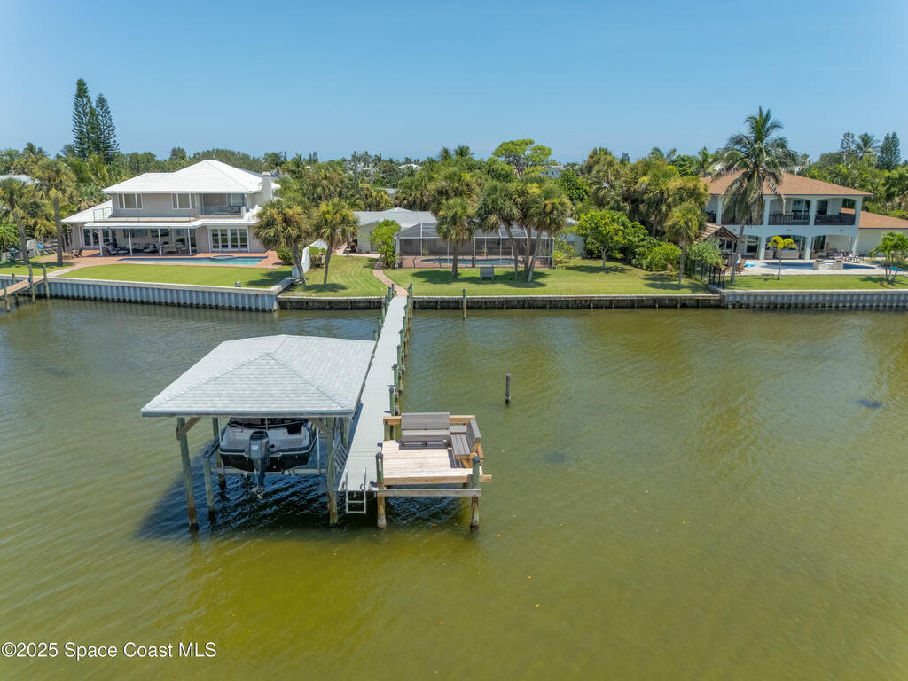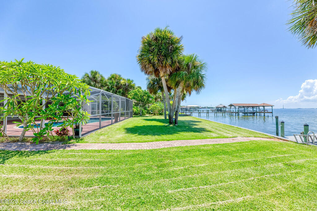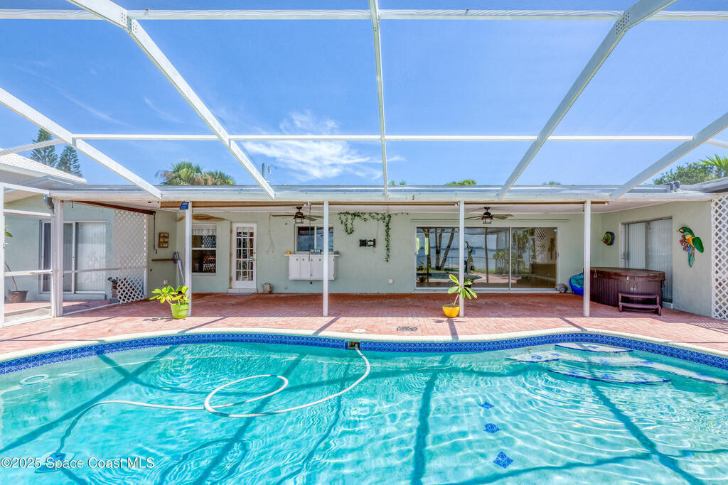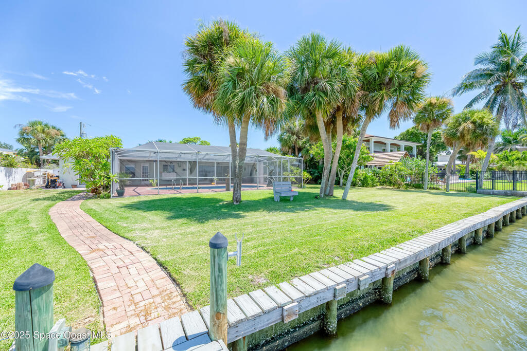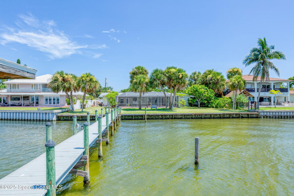 Riverfront Retreat in Melbourne Beach. Discover the perfect blend of tranquility and coastal luxury in this beautifully maintained 3-bedroom, 2-bath single-family home, ideally situated on a dead-end road for ultimate privacy. With 2,110 square feet of open-concept living, this home features 100 feet of direct frontage on the Indian River Lagoon with breathtaking 1-mile wide water views and unforgettable sunsets. Enjoy the Florida lifestyle to the fullest with a 100-foot private dock equipped with a 10,000 lb. boat lift and a cozy seating area, perfect for fishing, boating, or simply soaking in the serenity. The screened-in saltwater pool and paved lanai create the ideal outdoor oasis, surrounded by swaying palm trees and unobstructed water vistas.Inside, the home boasts tile flooring throughout, a cozy fireplace, and a modern kitchen with quartz countertop ideal for entertaining or family gatherings. The split bedroom floor plan ensures privacy,