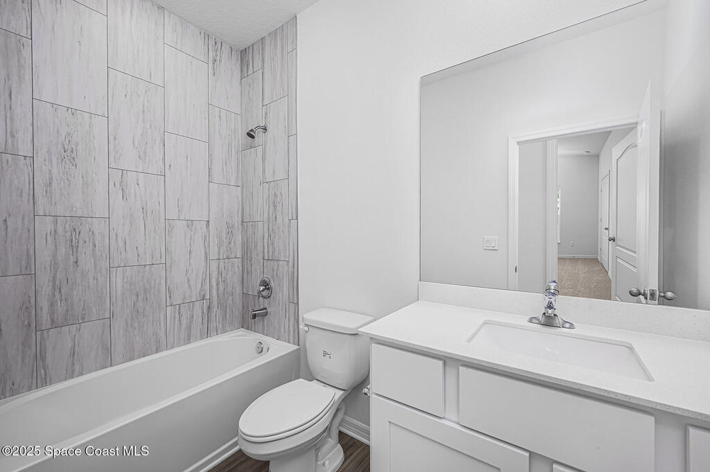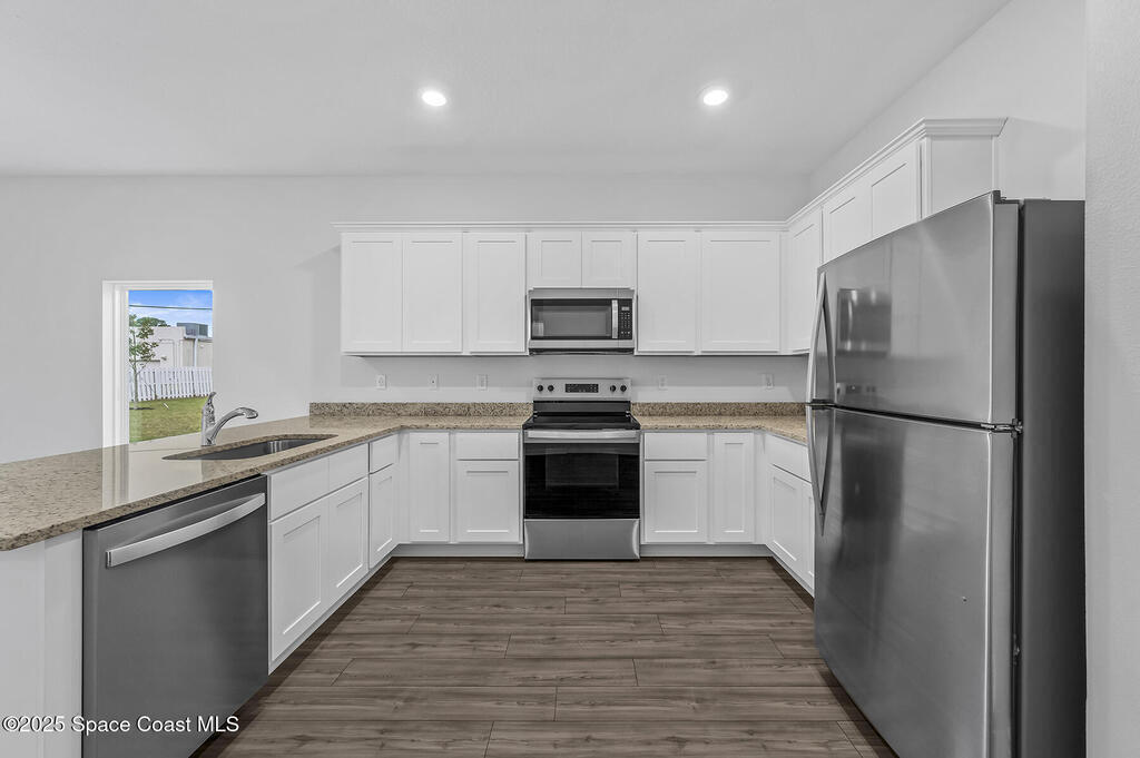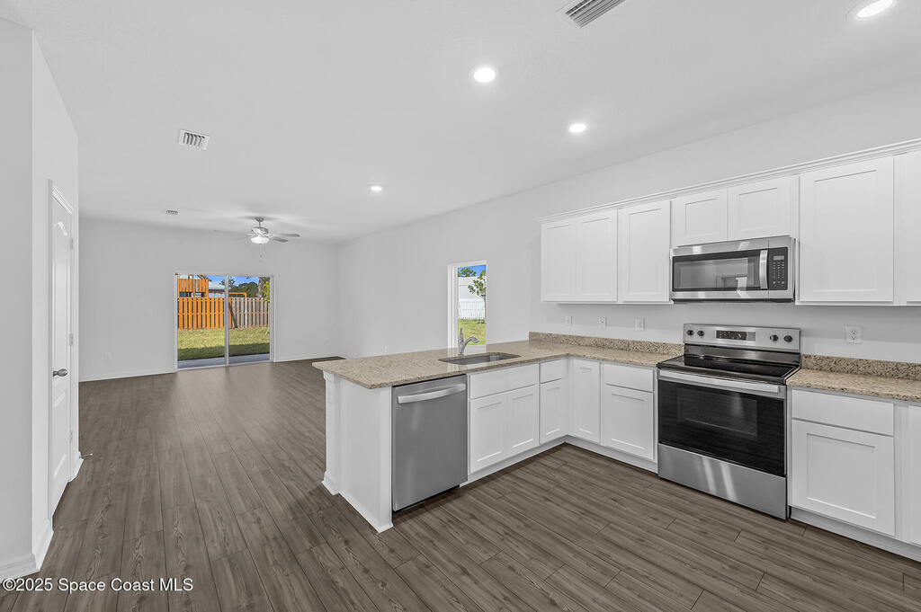 Ask us about our incentives, builder paid closing costs, & no down payment options! The Escambia floor plan serves as a spacious home for families and guests. Featuring an open concept floor plan, the home boasts 4 spacious bedrooms, 2 full bathrooms and is complete with over $10,000 in upgrades. These include energy-efficient Whirlpool(r) appliances, spacious granite countertops in the kitchen, stunning wood cabinets, brushed nickel hardware and an attached two-car garage. In addition, the Estero's secluded master retreat highlights a large walk-in closet. Best of all, this Palm Bay home offers residents a premier location with convenient access to nearby shopping, golf courses, world-class area beaches and amenity-packed parks. **appliance models are subject to availability**