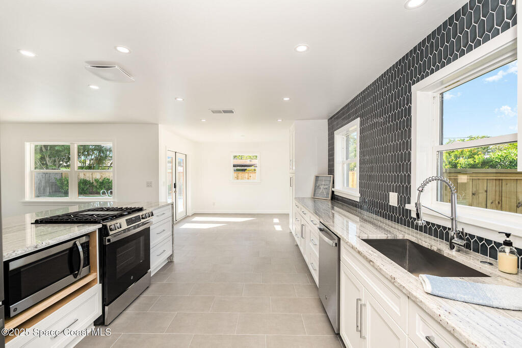 Exquisitely renovated 3-bedroom, 2-bath pool home that blends modern elegance with peace of mind. This turnkey property boasts a brand new hurricane-rated garage door (2024), resurfaced pool (2024), updated electrical panel (2024), and newer roof and A/C (2021). Enjoy a chef-inspired, fully remodeled kitchen featuring soft-close cabinets, granite countertops, new stainless steel appliances including a gas stove, and thoughtful finishes throughout. Both bathrooms have been completely redesigned with high-end materials. No cast iron plumbing. The home also features solid wood interior doors, mirrored closet doors, all-new baseboards, trim, and custom window and door casings. Additional upgrades include new ceramic tile flooring throughout, fresh interior and exterior paint, a new electric water heater, impact windows, and upgraded lighting with dimmer switches. The laundry area is set up for electric or gas dryer. Step outside to your private backyard oasis with a brand new custom wood