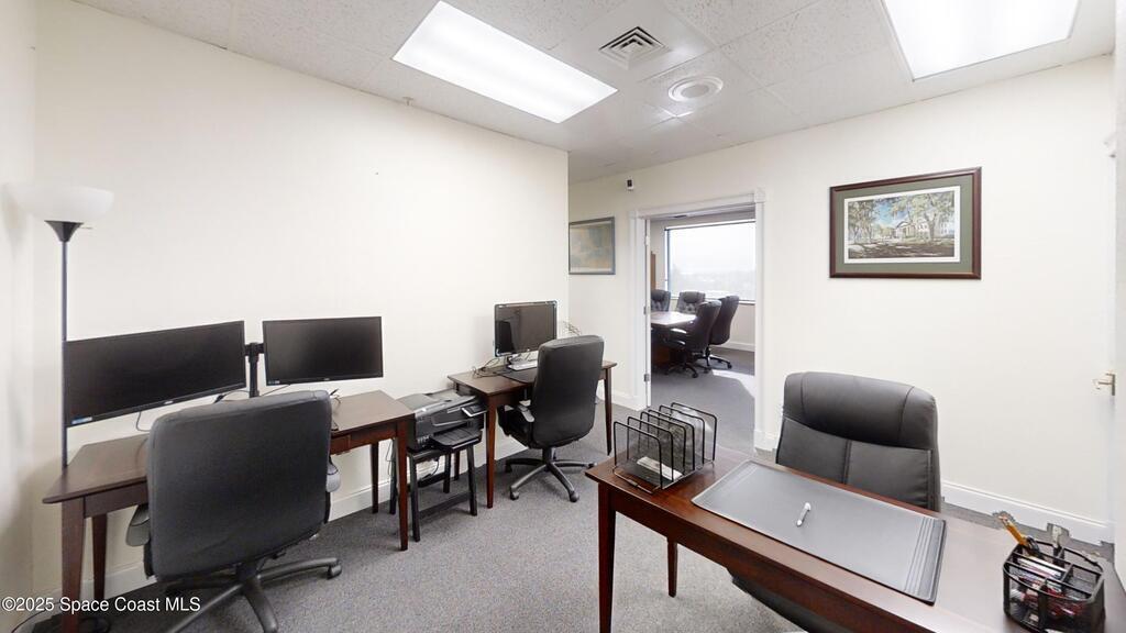 Available October 1, 2025. Centrally located Cocoa Beach commercial office on the 4th floor of the Cape Royal Building with a West facing picturesque view of the Banana River. The office is configured with a reception/bull pen area, private office, server closet and a large office/conference room for 594 contiguous square feet. (Units 426-428) The building has 24-hour access with automatic front doors and secure after-hours locking doors. There is plenty of parking in front and rear of the building. 3 elevators for quick access. Brand new impact windows and exterior paint for a fresh look. Digital and Pylon signage available from the Association. The building has fire protection in the form of sprinklers. FedEx and UPS has onsite lobby pickup. Rent includes electricity. Public restrooms on floors 2-10. Association fee paid by Owner. Diverse tenant mix and most commercially zoned businesses allowed. Owner is a Licensed Real Estate Broker.