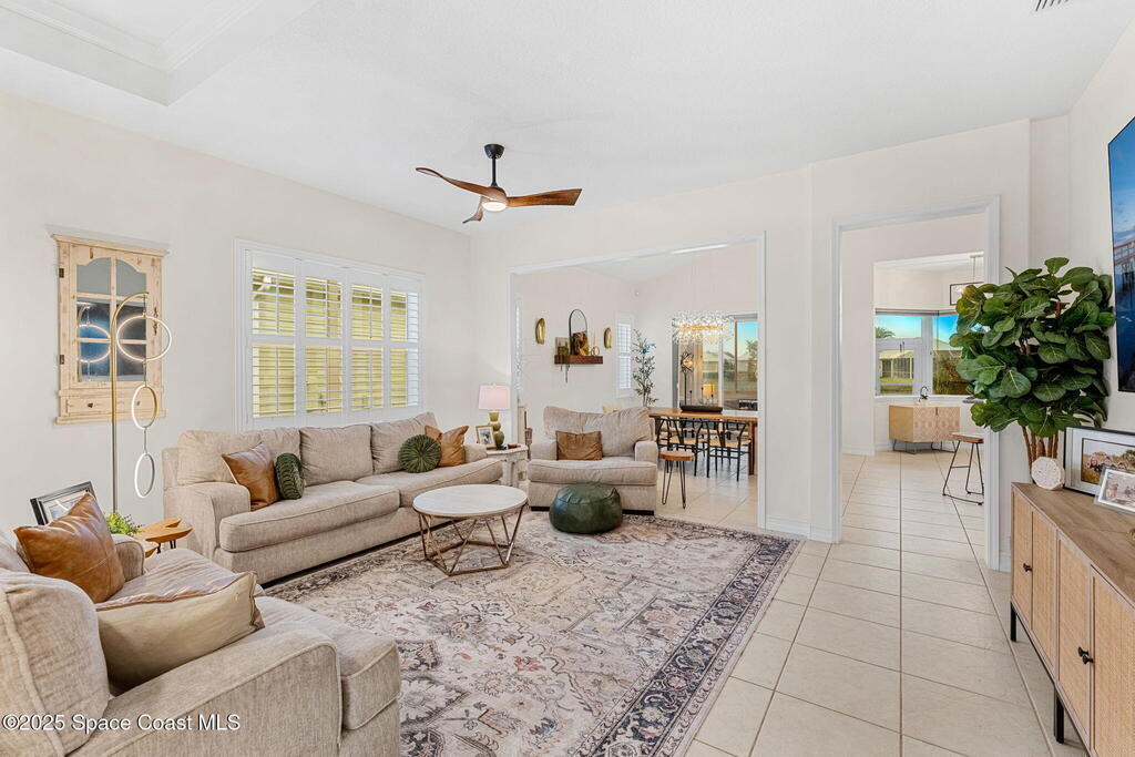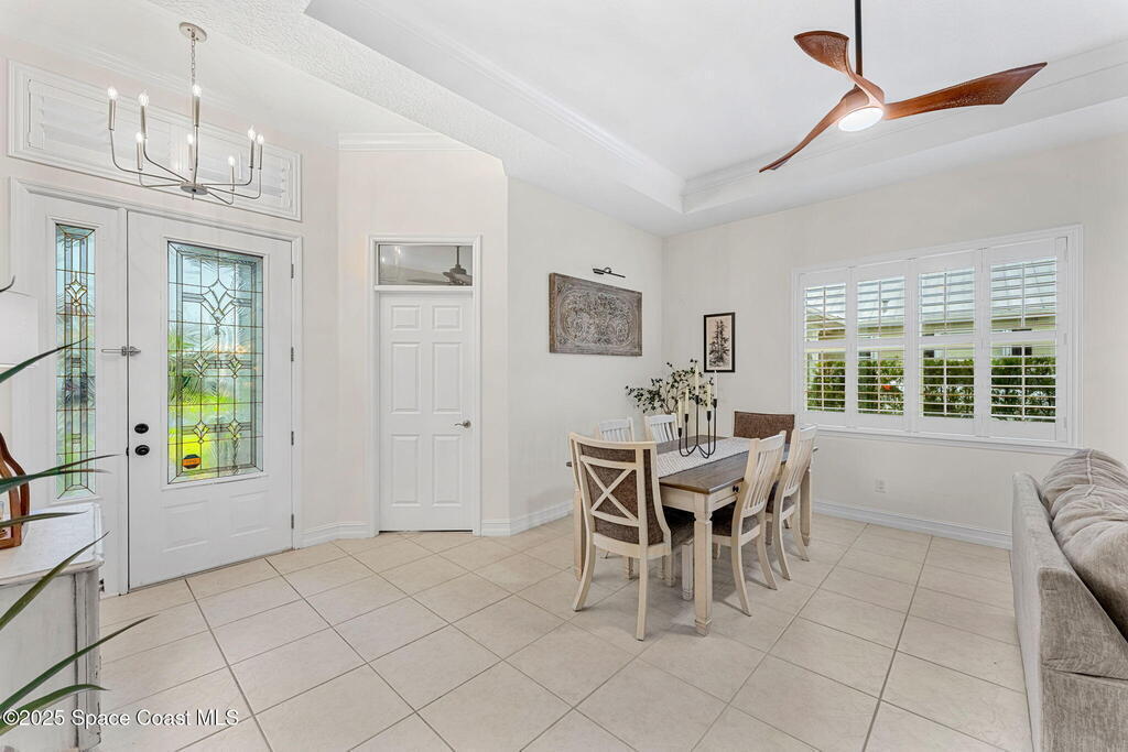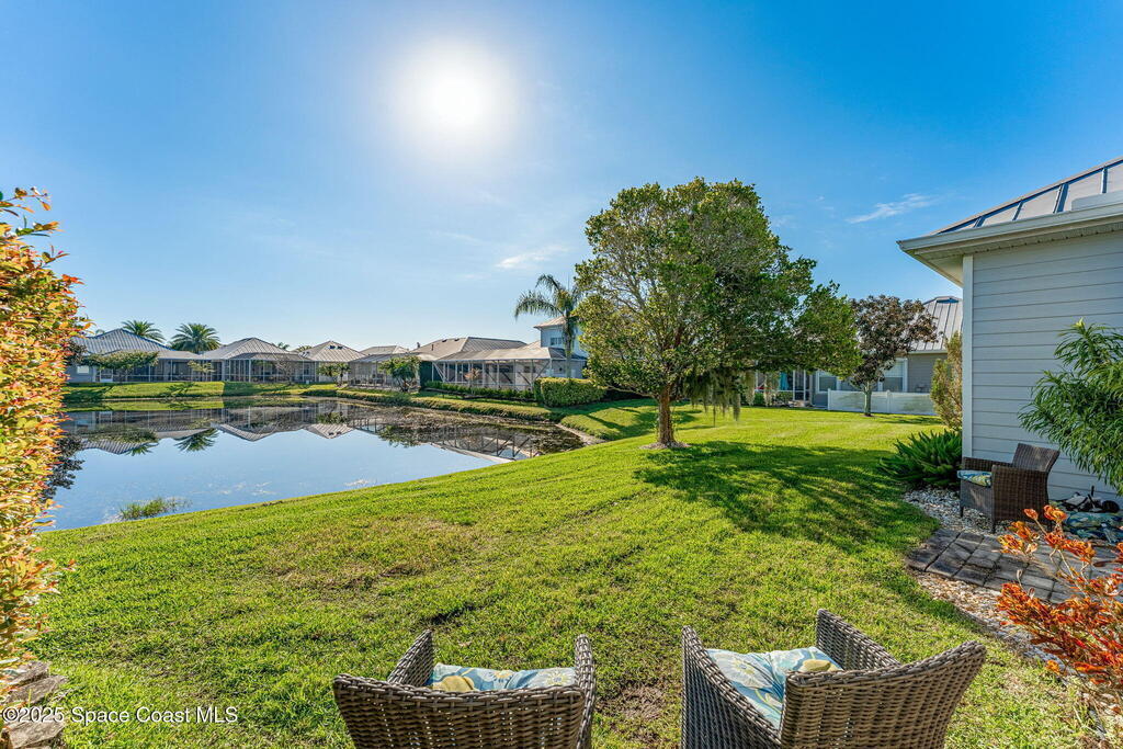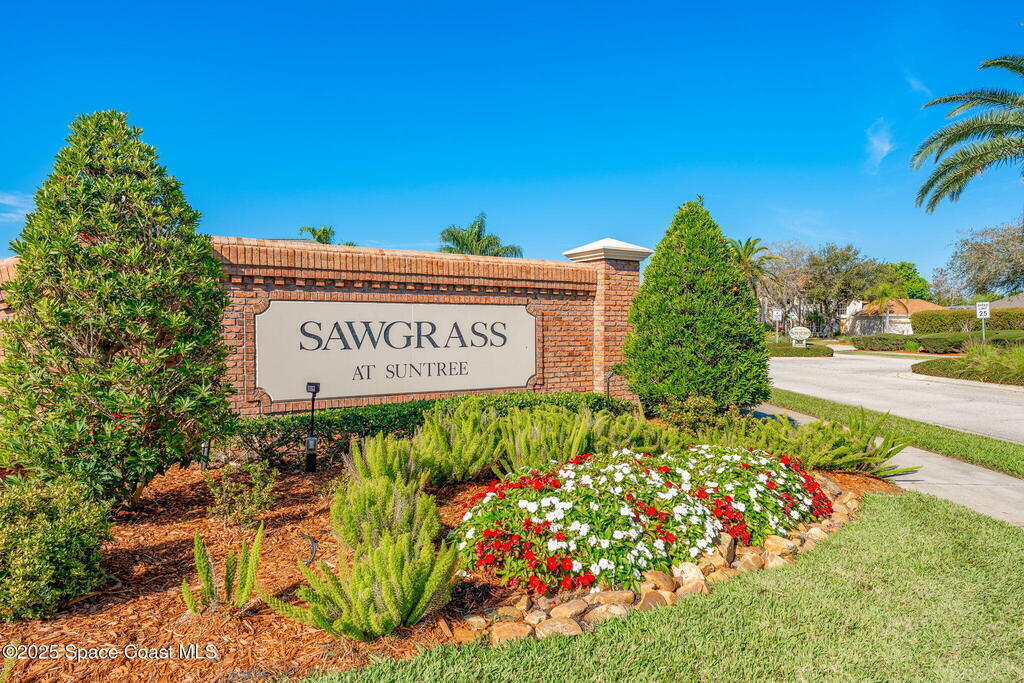 Discover a beautifully maintained home in a gated, Key West-inspired Suntree community. This flexible 4BR plan (or 3BR + office) features an open living space anchored by a spacious kitchen with Cheyenne cabinetry, gas cooktop, walk-in pantry, and generous storage. The primary suite offers two large closets, dual vanities, a jetted tub, and a walk-in shower. An enclosed patio overlooks tranquil water views, creating an inviting spot to unwind or entertain. Additional highlights include plantation shutters, a metal roof, paver driveway, oversized garage, and a welcoming portico. The HOA handles lawn care, exterior paint, and community upkeep for easy living. Enjoy quick access to Suntree Country Club along with nearby shopping, dining, beaches, and major roadways--an ideal blend of comfort, convenience, and low-maintenance style.