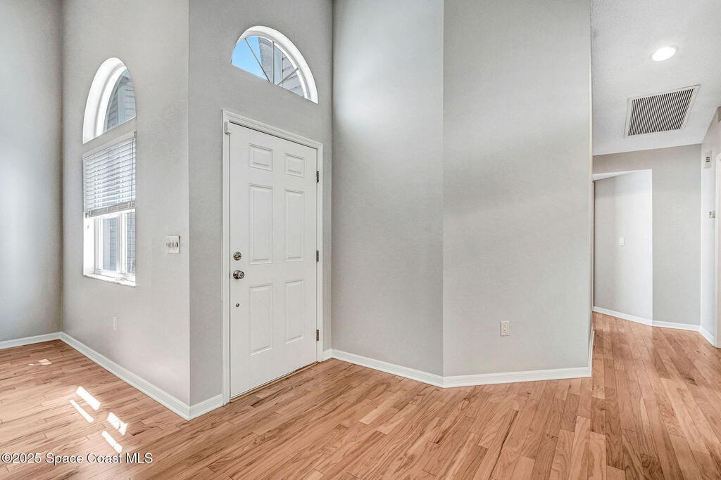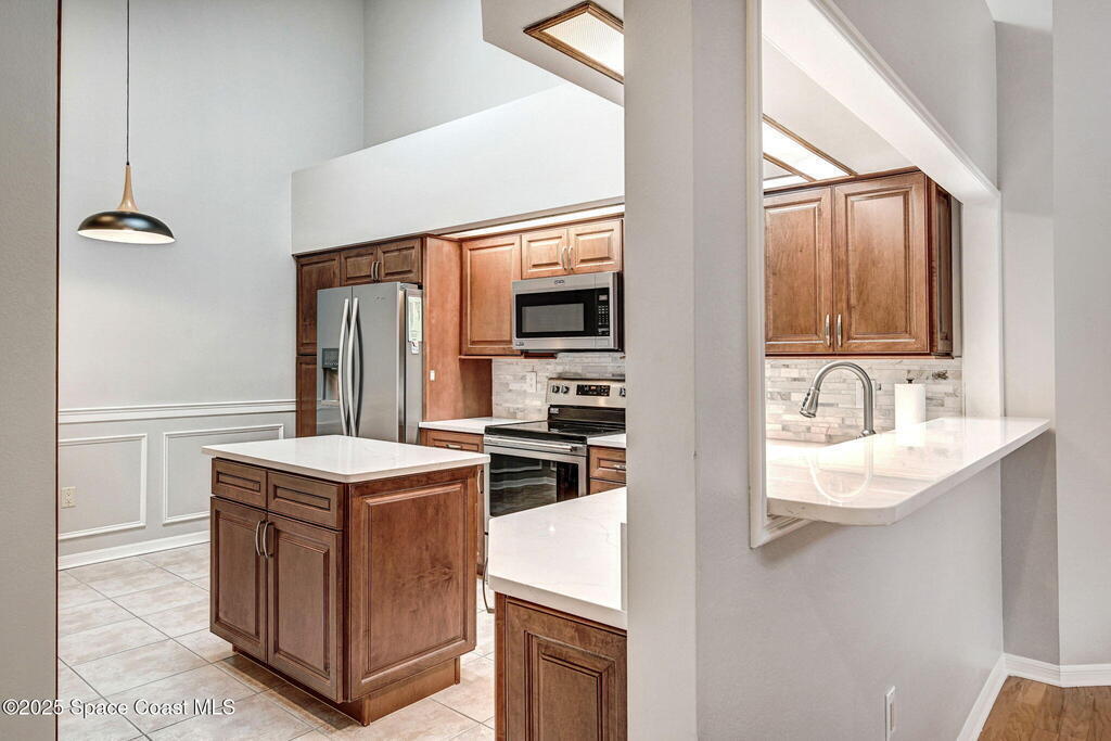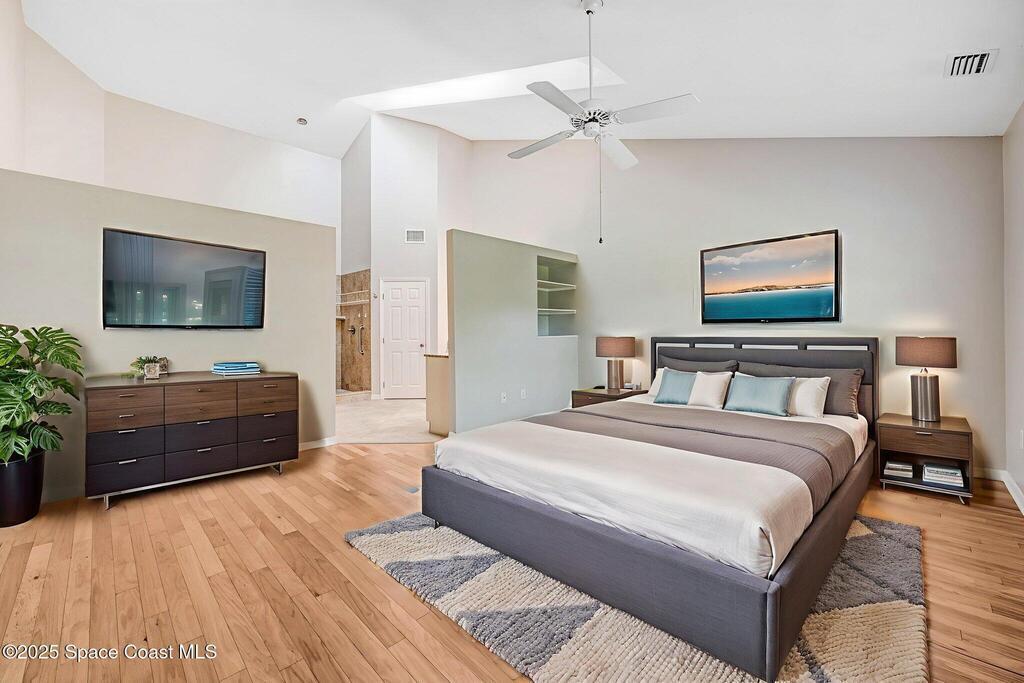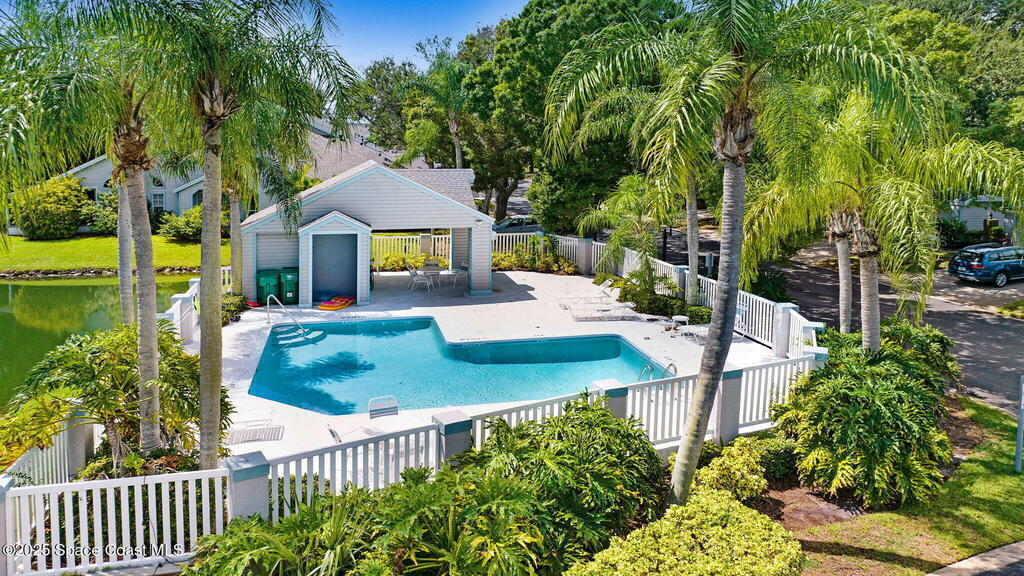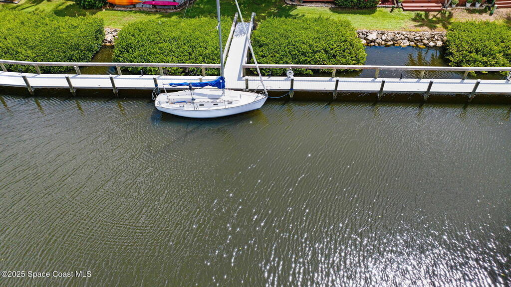 DISCOVER PARADISE - EXCLUSIVE DOCKSIDE VILLA. ONE STORY 3 Bd/2bath. Move right in & escape to your own private OASIS. No Stairs to climb. There is a Community Pool & Dock on a DEEP WATER, NAVIGATIONAL CANAL leading to the INTRACOASTAL WATERWAYS for you to enjoy. This Gem is better than new with its fresh designer, interior PAINT and hardwood OAK flooring througout. New ROOF in 2021, Cathederal Ceilings and Skylights flooding the home with natural light. GOURMET EAT IN KITCHEN comes equipped with Stainless Steel Appliances, New Refridgerator, Glass top Stove, Microwave & BOSCH Dishwasher, Center Island, Breakfast Bar, QUARTZ Counter tops & Ceramic Tiles. MASTER BEDROOM SUITE features double sink Vanities, large walk in shower, a enormous walk in Closet & Sliding doors to your own private Patio. PRIME LOCATION by Kiwi Tennis, nearby Gleason Park, Pelican Beach, Restaurants & Shopping. 20 min to Cape Canaveral & Kennedy Space Center, 1hour to Orlando Airport & Disney World.