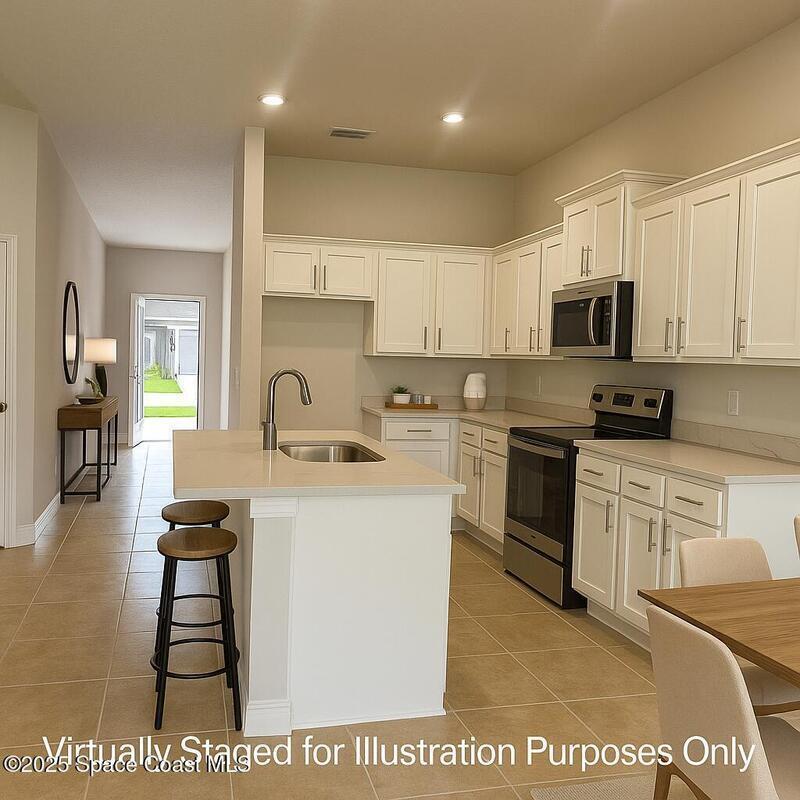 Step into modern comfort with this beautifully designed home offering 2,000 square ft of open living space in the highly sought after St. John's Preserve. This 4-bedroom 2 bath home features an inviting open concept layout with high ceilings, large windows for abundant natural light, with tile and carpet flooring throughout the main living areas. This thoughtfully designed floor plan includes a large Dining Room for hosting Holidays with family and friends as well as a separate breakfast nook area and family room surrounding the kitchen and island bar that's perfect for everyday living. The central hub and heart of the home kitchen soft-close cabinets, stainless steel appliances.