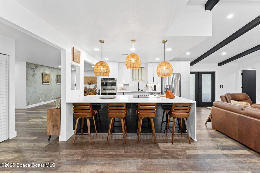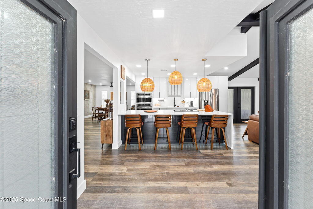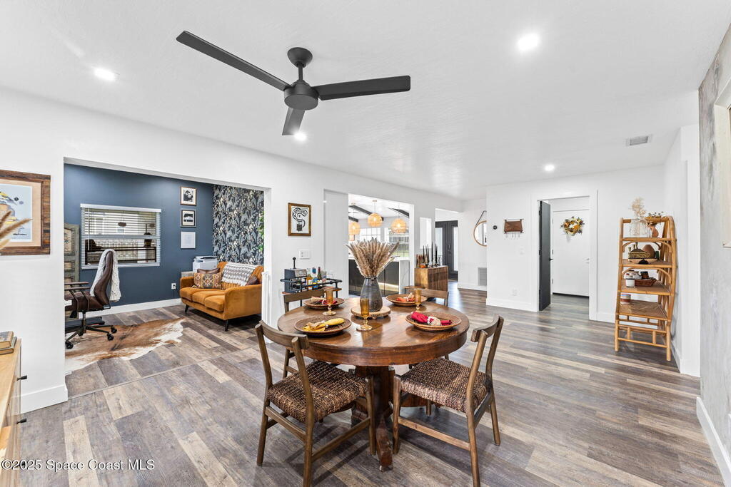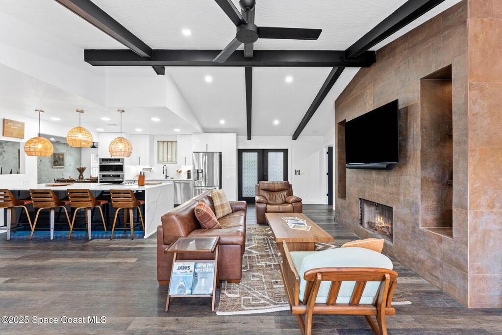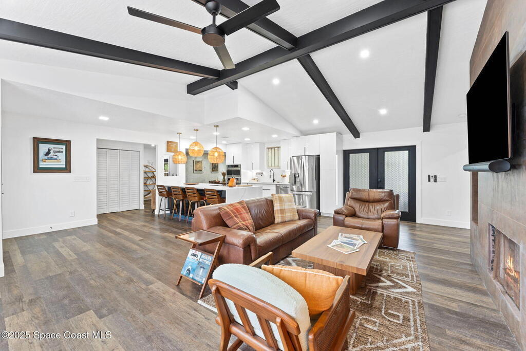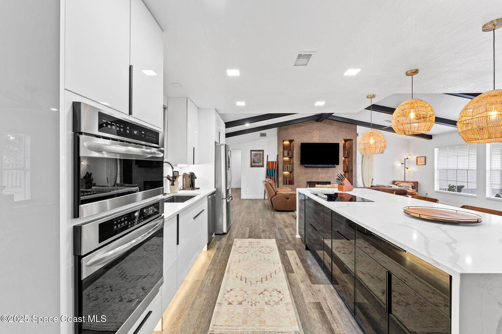 This Palm Bay gem brings all the vibes! With 3 bedrooms, 2 baths, and a 2-car garage, the open floorplan and vaulted ceilings make it feel light, bright, and wide open. The kitchen steals the show with a big island and wine cooler-perfect for cooking, sipping, or entertaining. Cozy up by the wood-burning fireplace, spread out with split bedrooms, and enjoy the convenience of LVT & tile floors throughout. Thoughtful updates include a tankless water heater, smart thermostat, and manual storm shutters for peace of mind. Outside, you'll love the screened patio, fenced yard, storage shed, and fire pit-perfect for gathering with friends under the stars. Stylish, functional, and move-in ready-this one checks all the boxes!