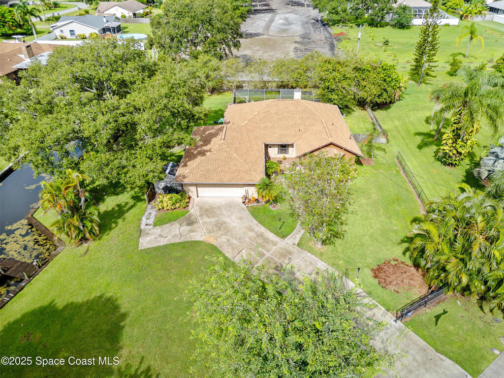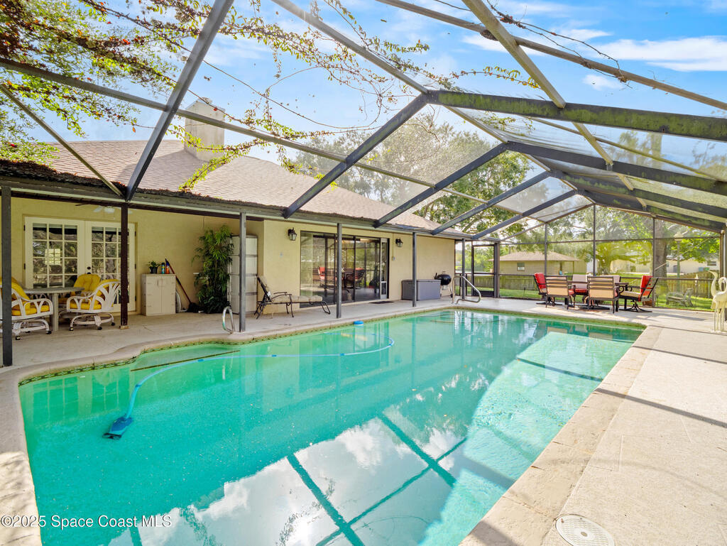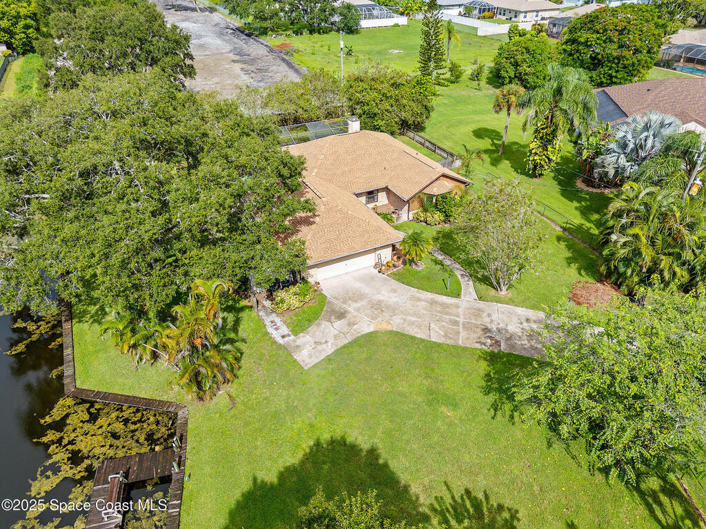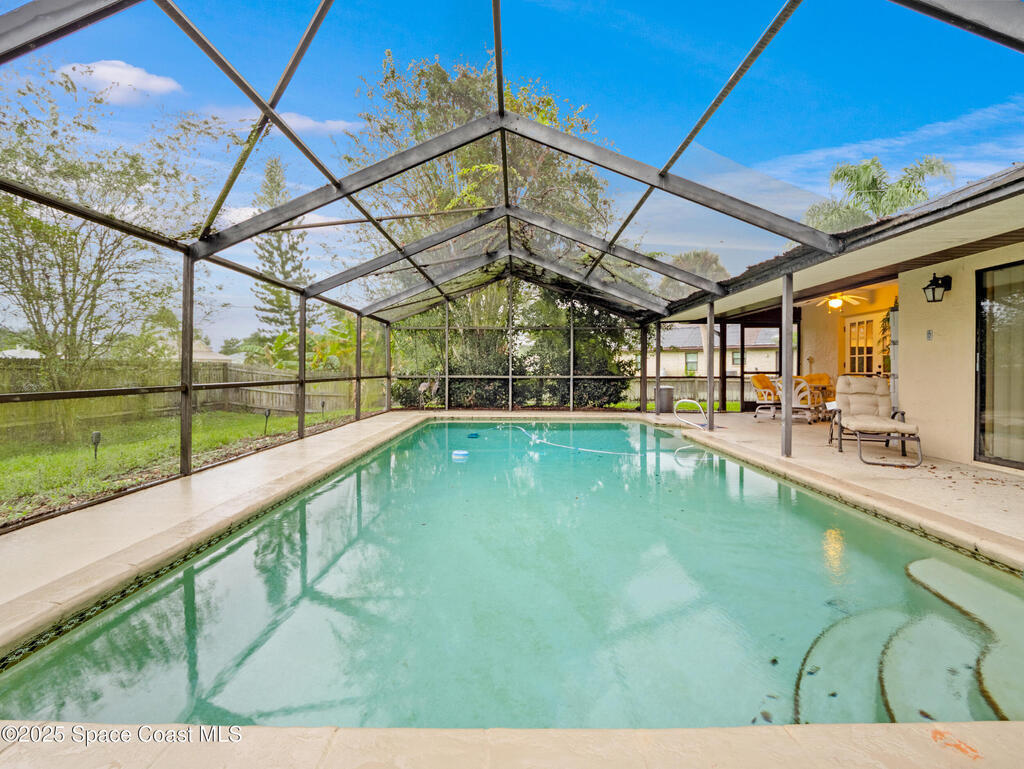 This home can be purchased with NO INCOME VERIFICATION needed!Tucked away at the end of a peaceful Merritt Island cul-de-sac, this one-of-a-kind Florida charmer is the kind of home everyone will be talking about. Set on over half an acre of fully fenced paradise, this sprawling retreat features cozy outdoor benches perfect for gathering around a crackling bonfire under the stars. Step into your private oasis and dive into the sparkling pool surrounded by a full birdcage enclosure--perfect for year-round relaxation, weekend get-togethers, and unforgettable summer nights. Follow the path to your private dock where a timeless wooden bench invites you to unwind and watch the water shimmer in the afternoon sun. Inside, an open-concept layout offers oversized bedrooms, spacious baths, and endless versatility. The attached ''apartment'' space--already equipped with plumbing--can easily transform into a guest suite, home gym, or studio. Recent updates include a brand-new roof installed January