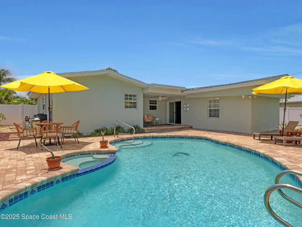 Move in ready, fully furnished available. Home just a 5-minute walk to the beach! This 3bedroom, 2bath property includes a versatile media/flex room, private pool with spa, and a 1car garage. Open layout, washer & dryer included, and located in a quiet, desirable neighborhood near the causeway and Patrick Air Force Base. Lawn care and pool maintenance are included in rent. Rental insurance required. Don't miss this beachside gem!