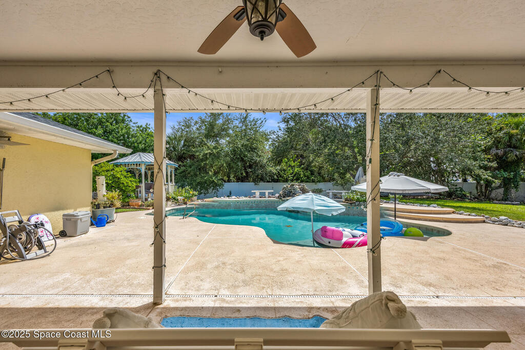 Introducing a distinguished high-end lease that blends elegance and lifestyle. This residence showcases a stunning private pool and spa retreat, with a huge backyard, sitting area, waterfall and large shaded poolside areas ideal for entertaining or relaxing in style.with gazebo and fire-pit.Designed with refined finishes and spacious living areas, this home is situated in a prime location close to top rated schools. This inviting three-bedroom, two bath home sits on a private cul-de-sac, giving you peace, privacy, and plenty of space to relax and enjoy everyday living. Fabulous split floor plan welcomes you with a beautiful entryway and charming water fountain. At the heart of the home, a comfortable kitchen that serves as the central gathering place, blending functionality and warmth for everyday living. Centrality located to the beaches, shopping and restaurants, Patrick Air Force base, Nasa and Cape Canaveral as well as Melbourne airport. Just an hour to Orlando airport.