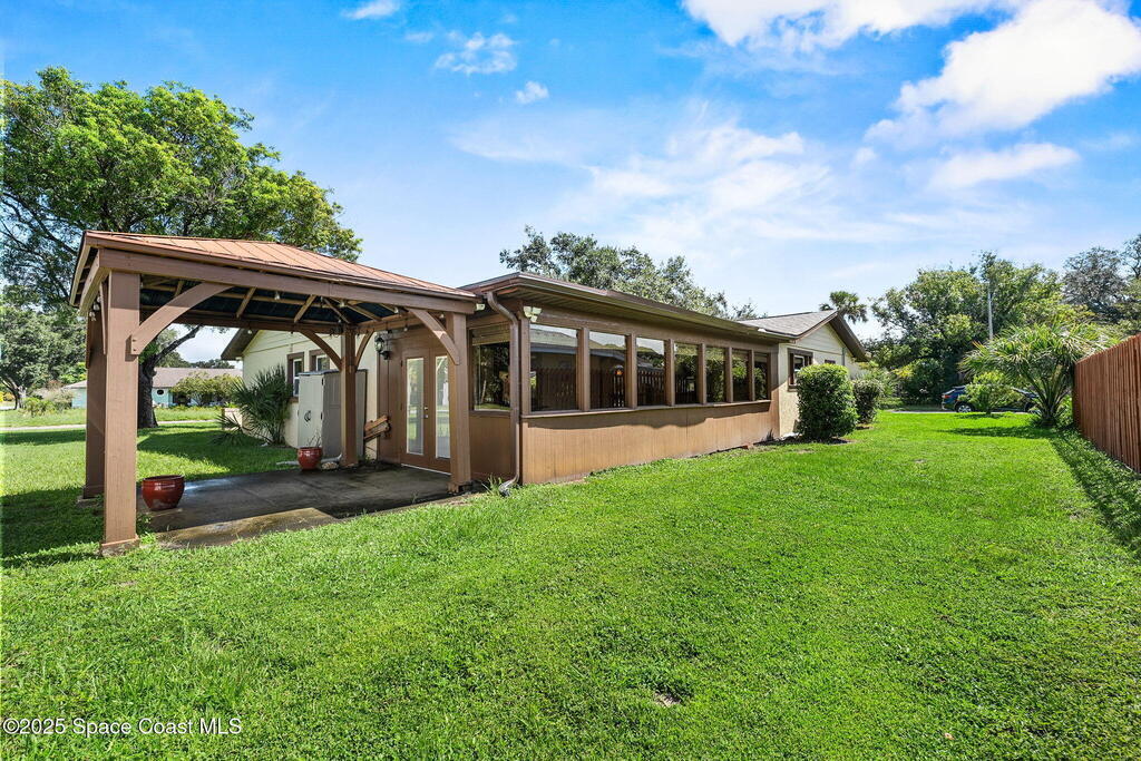 Nice home in the heart of Titusville ! This spacious residence offers a formal living room, formal dining room, family room, and a large Florida room with wood floors and walls of updated windows filling the space with natural light. The kitchen features a convenient pass-through to the Florida room, perfect for entertaining. Enjoy a desirable split-bedroom plan, a brand-new roof, and updated windows throughout the home. Step outside to a private back patio with a pergola, ideal for relaxing or outdoor dining. Located in sought-after Royal Oak neighborhood. Close to beaches, shopping, dining, and just minutes from the Space Coast--watch rocket launches right from your front yard! Nice corner lot .33 acre. Epoxy flooring in garage.NEW ROOF, A/C 2017 . Hot water 2023