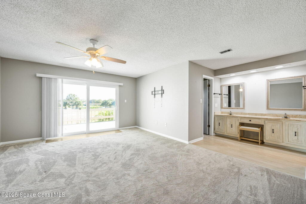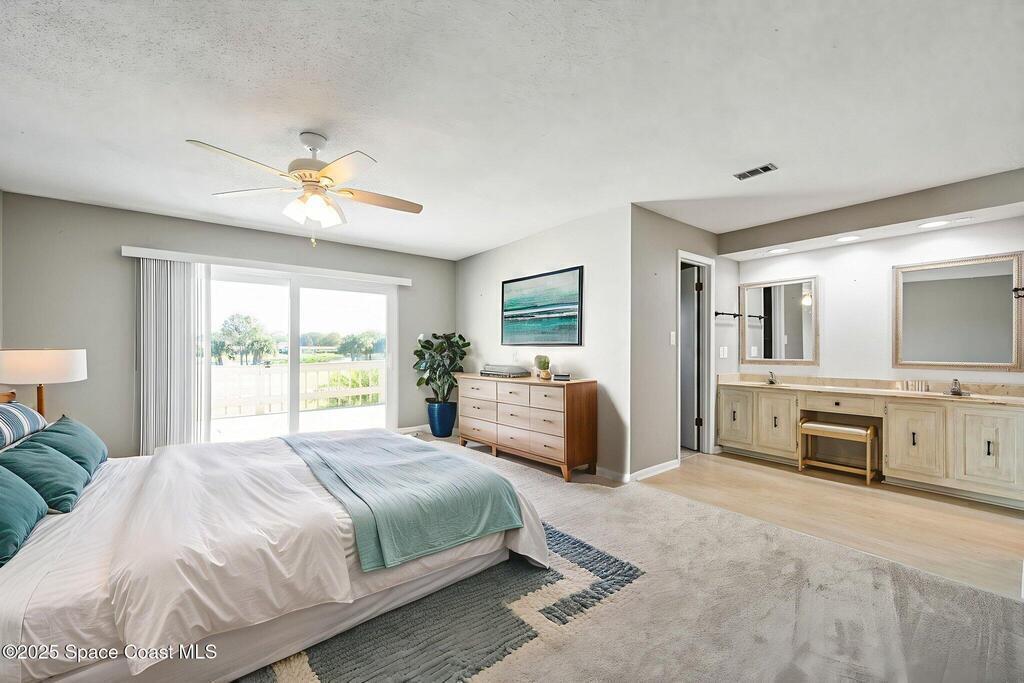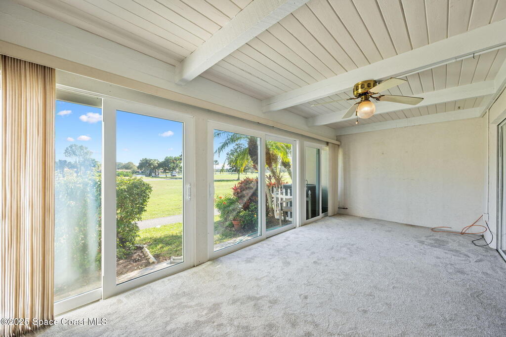 Prime Suntree location! This 1947 sq ft townhome (per owner) includes a 219 sq ft climate-controlled sunroom with stunning water and fairway views of Suntree's Championship Classic Golf Course. Featuring three bedrooms, each with its own ensuite bath, the flexible downstairs suite with walk-in closet is open to both the bedroom and hallway, making it ideal for guests or a home office. Spacious garage fits both car & golf cart! Recent updates include impact sliding glass doors (primary & sunroom), new A/C & water heater (2024), roof (2023), Trex balcony decking, newer carpet, LVP floors, and a new balcony railing on the way. Zoned for top-rated schools: Suntree Elementary, Viera Middle & Viera High. Low monthly fee covers insurance, exterior maintenance, roof, paint, water, sewer, pest & trash. Close to I-95, medical, shopping, dining & beaches!