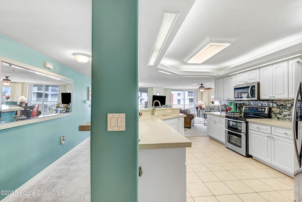 Stunning residence nestled in the heart of Cape Canaveral. The kitchen is a chef's dream, equipped with new SS appliances. Elegant backsplash & sparkling quartz countertops. Spacious primary bedroom with his & her walk-in closets. The ensuite bathroom features a garden tub & walk-in shower, offering a spa-like experience. Open floor plan, creating a bright and airy atmosphere. Fresh new paint throughout, this unit is move-in ready. This property boasts a distinctive wraparound balcony that provides panoramic views of the Banana River & surrounding area. The perfect setting for enjoying the Florida sunshine, rocket launches & entertaining friends. Enjoy the clubhouse, community pool by the river, fitness center & so much more! Garage parking under building. Water, cable & internet included. Minutes from Port Canaveral and its array of vibrant restaurants. Pristine beaches are less than a 2-mile drive away. Schedule a viewing today and experience the coastal lifestyle at its finest!