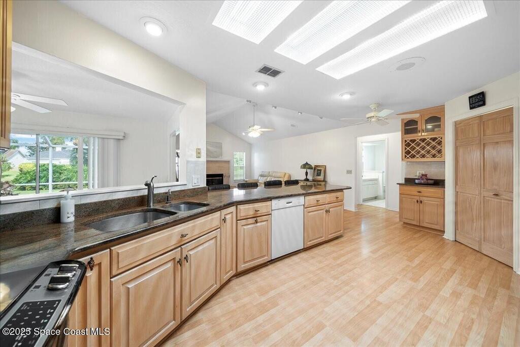 LAKEFRONT LIVING IN THE HEART OF SUNTREE! Nestled on a spacious .36-acre lot, this home offers the perfect blend of comfort and convenience. Recent updates include a brand-new roof & beautifully updated granite kitchen counters. Step inside to soaring cathedral ceilings & bright, open split floor plan. The central kitchen is designed for both function & style, featuring a breakfast bar, pantry, ample cabinet space, and custom pull-out shelving, spice racks, and trash storage. The family room with cozy gas fireplace flows seamlessly into the large enclosed Florida room, overlooking an expansive screened patio ideal for entertaining or enjoying peaceful lake views. The primary suite is a true retreat with abundant closet space, a walk-in dressing room, an extended area perfect for a home office, gym, or nursery. The updated bath offers double sinks, a soaking tub, and a separate shower. Additional highlights include a front paver patio and a convenient inside laundry.