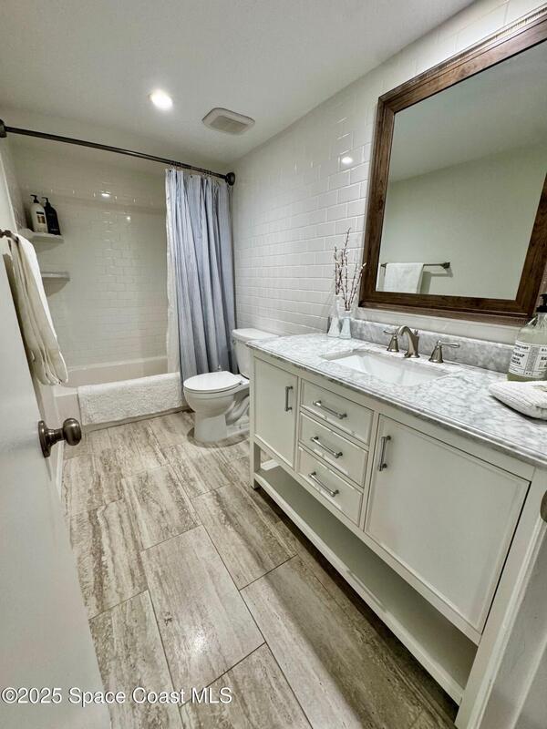 This home has calming natural light and a neutral paint scheme. The interior was completely remodeled (Nov 2019) and new roof (Aug 2025). Featuring Tempur-pedic carpet, new tile, recessed lighting, and new ceiling fans. Kitchen nicely updated with almond/coffee stained cabinetry, granite, and stainless steel appliances. The extra large living room and dining area open up to the covered screened porch. It offers 3 spacious bedrooms, 2.5 baths. Two of the upstairs bedrooms open to connected balcony perfect for rocket launches. Primary bedroom offers an ensuite bathroom with walk-in closet. Bathrooms completely updated with subway tile, white cabinetry and fixtures. This home is located in a desirable area- convenient to the YMCA, Tituslanding and more! Agent Owned and motivated to sell.