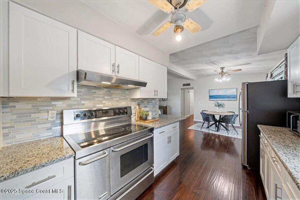 Welcome to this spacious 4-bedroom, 3-bath Merritt Island home. Perfectly blending comfort, function, and Florida lifestyle. Step inside to find a beautifully updated kitchen and an open floor plan ideal for modern living and entertaining. The kitchen boasts granite counter tops, high end cabinetry, eat in breakfast bar, and stainless appliances. The primary suite bathroom has been thoughtfully designed with accessibility in mind. The converted garage offers an additional bonus space. Perfect for a home office, playroom, or fitness area. Enjoy the best of Florida living on the large screened back porch. 2019 metal roof, freshly painted exterior, 2010 metal shutters, this home offers both style and durability. Centrally located close to well rated schools, Aerospace industry job sites, and i95 for quick commute to the Beach or Orlando.