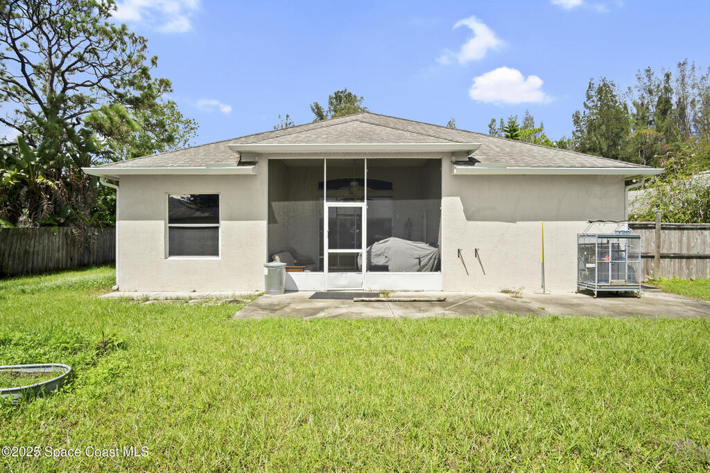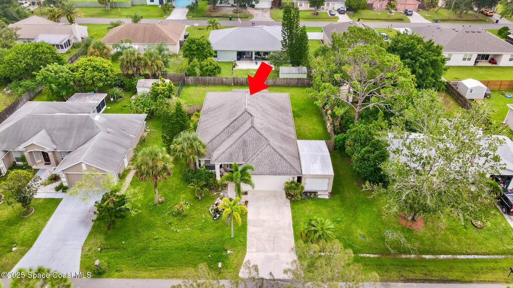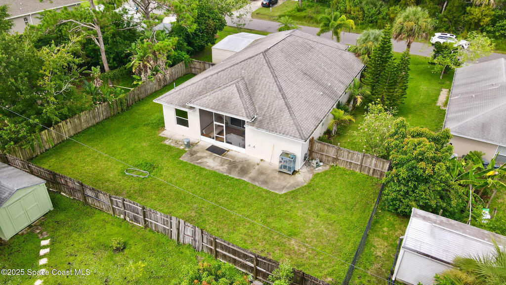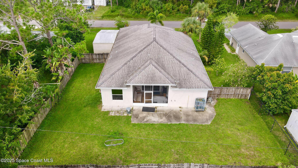 Step inside and be greeted by a bright and welcoming interior. This well-maintained 3bed 2 bath home features a thoughtful split-bedroom floor plan, providing privacy and functionality. Property features a brand new roof, large storage shed with power and tropical backyard. The spacious layout is perfect for family gatherings or simply relaxing after a long day. This home is conveniently located in a quiet, residential neighborhood of Northwest Palm Bay, offering a peaceful escape while still being just minutes away from schools, parks, i95 and shopping centers.