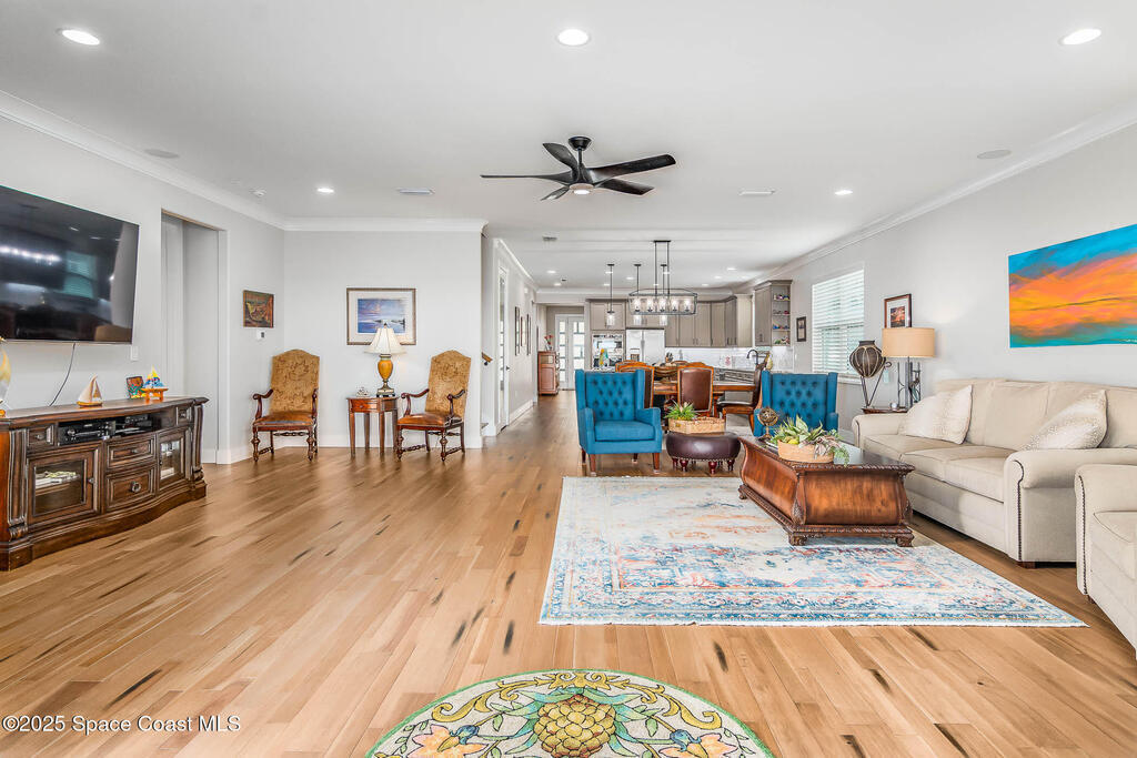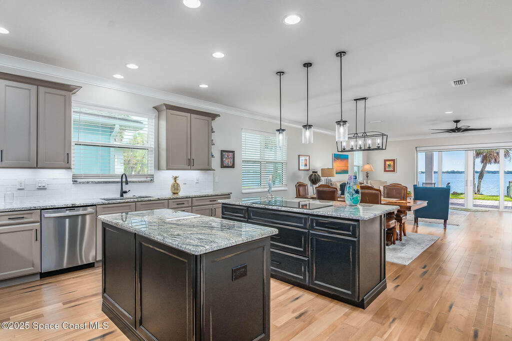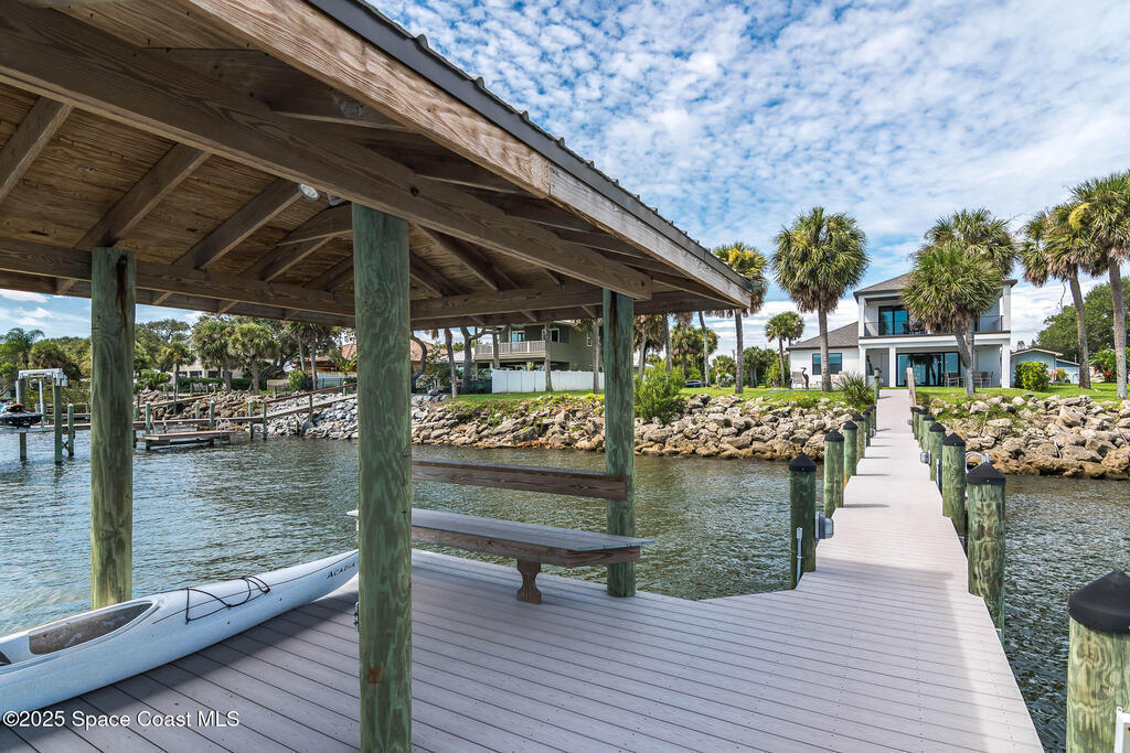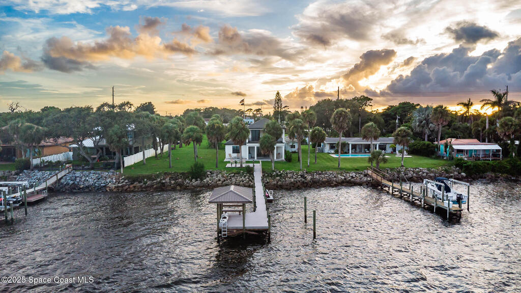 Make this 2022 riverfront home your own & embrace the coastal lifestyle. The kitchen shines w/ center island, cooktop w/ pendant lighting, built-in oven & microwave. Tray ceilings w/ inlaid lighting showcase both the flex rm & primary suite. Sliders open the dining & living areas to a riverfront backyard w/ lounging deck, porch & private dock w/ boat slip. Impact windows add peace of mind & the long driveway easily fits your RV & toys. Upstairs, 2 bdrms open to a balcony w/ sweeping river vistas, while tongue-and-groove ceilings on both porch & balcony add timeless charm. The primary bath offers dual vanities, floating tub & glass-enclosed shower. According to the county, an accessory structure--such as a detached garage up to 1,500 sq ft--may be built on the property, creating exceptional potential for storage or a workshop. Here, life feels effortless, weekends stretch longer & the river transforms simple moments into lasting memorie