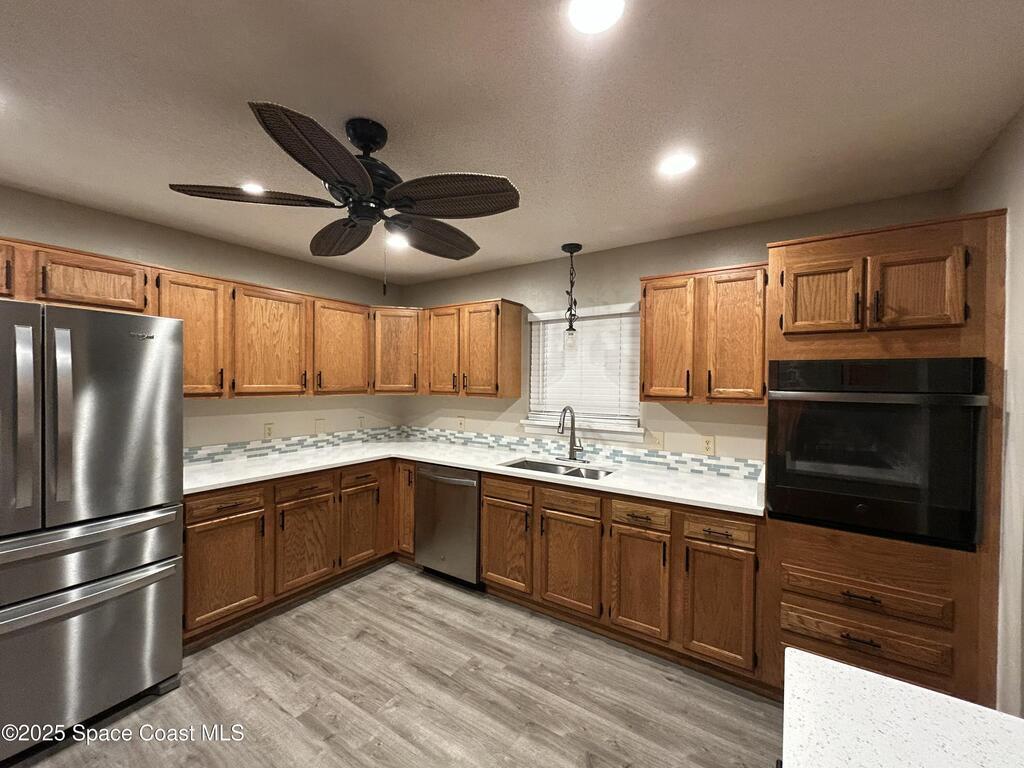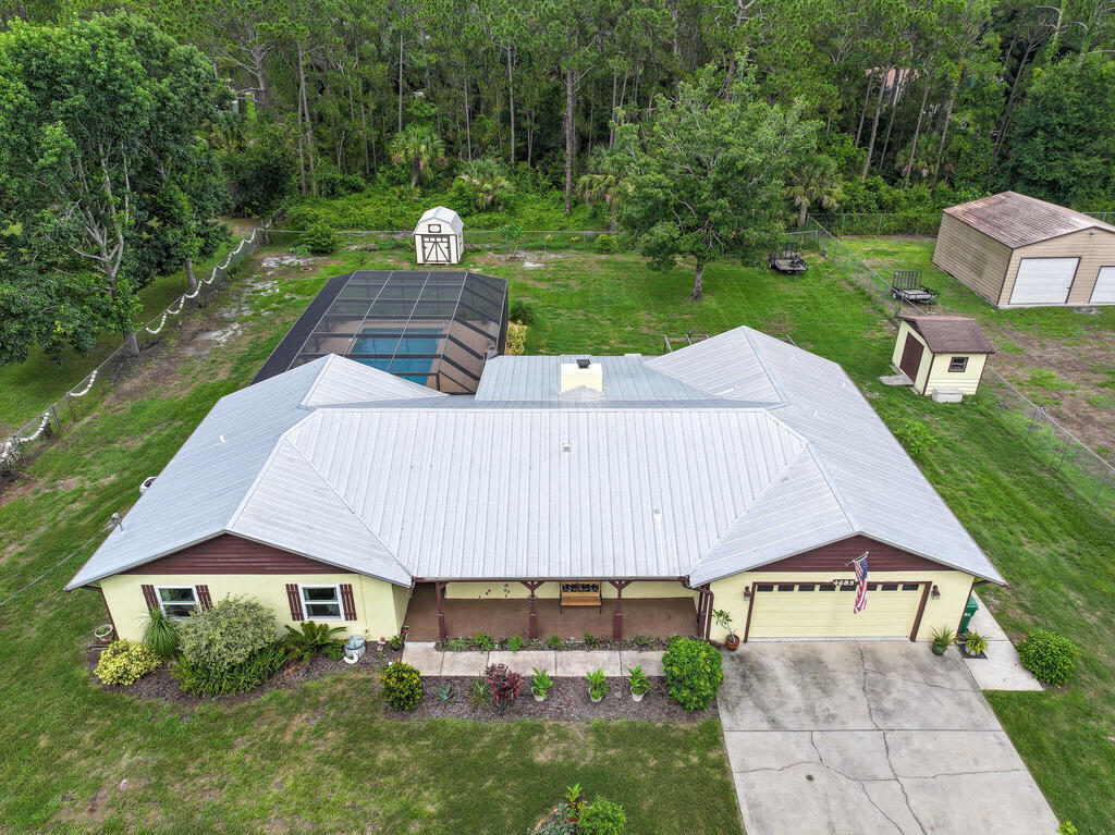 ''MOTIVATED SELLER!'' UPDATED KITCHEN with solid wood resurfaced cabinets, Beautiful Sparkling white QUARTZ counter tops, newer appliances, and more. Discover this tucked-away gem in sought-after Canaveral Groves! Stunning 4 Bed, (possible 5th), 2.5 Bath, 2 Car Garage home on a sprawling 1.1. acre lot with mature trees, private backyard, sparkling heated/enclosed/in-ground POOL, two sheds, and a Metal Roof! This well-maintained residence is NEWLY HURRICANE READY with a WHOLE HOUSE generator, NEWER hurricane windows & doors throughout, additional attic insulation for substantial insurance discounts, and energy savings. Property features, new air/heat pump, two septic tanks, irrigation well, termite bond, and FEMA flood exception certificate, everything you need for easy Florida living!