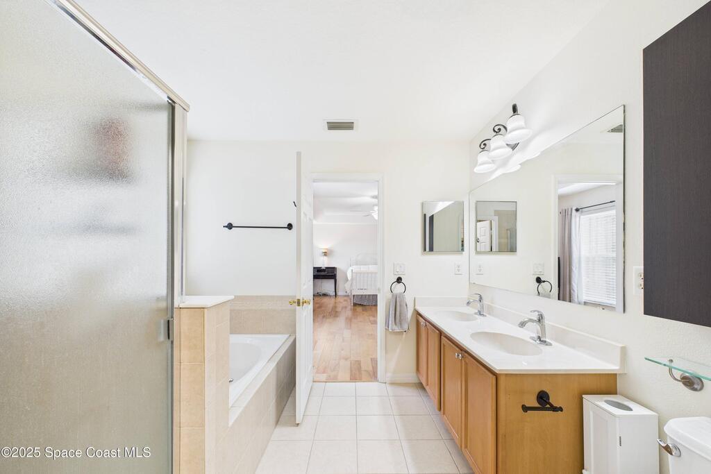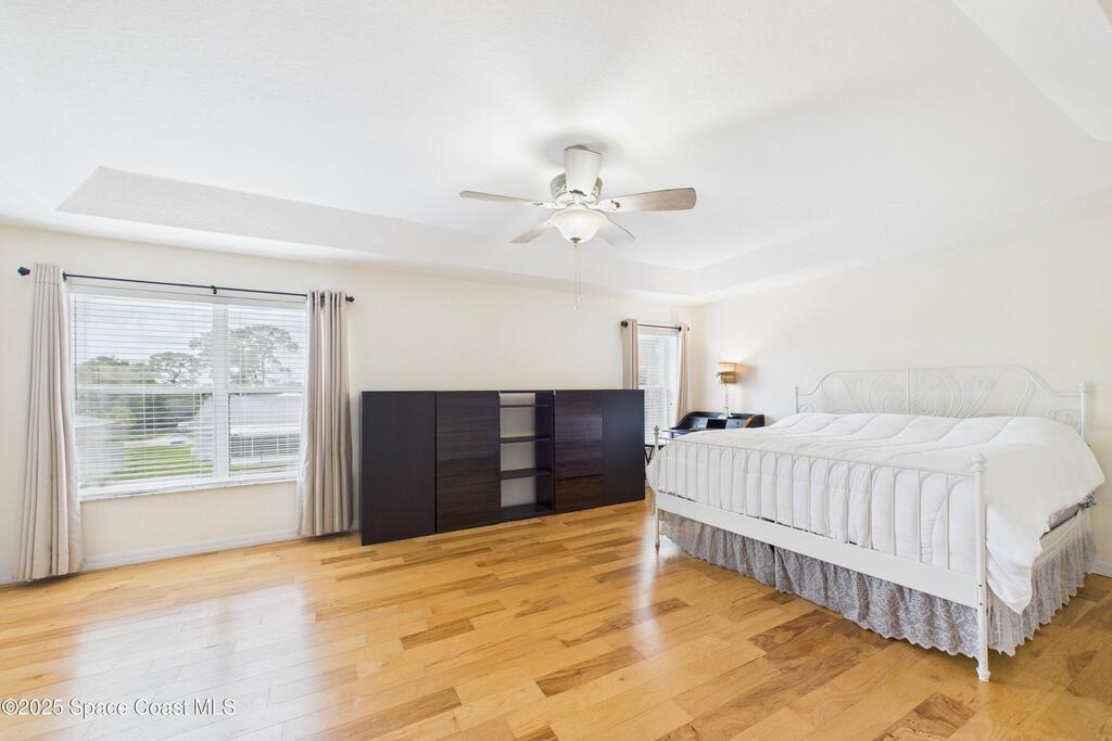 Welcome to this inviting 2-story Lockmar home, perfect for families seeking comfort and style. The first floor features easy-to-maintain tile throughout with spacious living and dining areas, ideal for gatherings or everyday living. Upstairs offers oversized bedrooms with engineered hardwood, ample closet space, and a convenient laundry room. The primary suite boasts a soaking tub and separate shower. 2 Full Bathrooms upstairs and 1/2 bath downstairs. Enjoy the fully fenced backyard with pergola and shed. Recent updates include a 2023 roof, storm shutters, and irrigation system. Washer and dryer included. NO HOA. Centrally located in a peaceful community with easy access to I-95, Palm Bay Rd, Malabar Rd, and Emerson. Close to shopping, dining, parks, and schools including Lockmar Elementary, Southwest Middle, Palm Bay Magnet Senior High, and Eastern Florida College.
