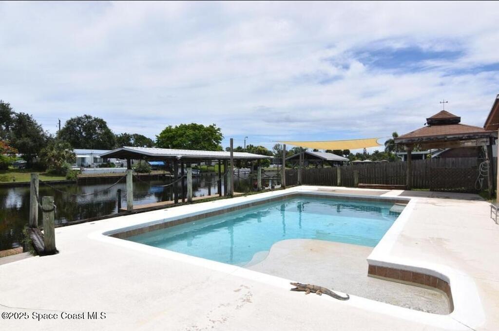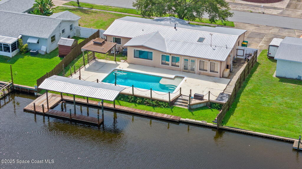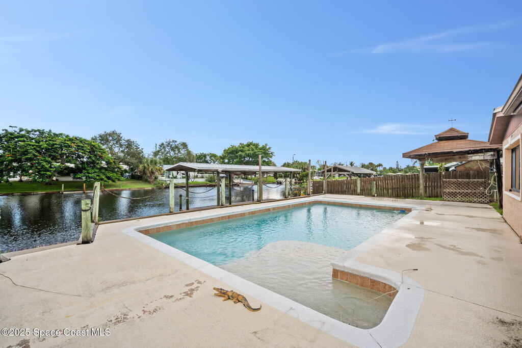 Discover the perfect opportunity to create your dream Florida retreat in this waterfront pool home, ideally located in central Merritt Island. Just minutes from grocery stores, 45 minutes to Orlando International Airport, 10 minutes to famous Cocoa Beach and Port Canaveral., this property blends convenience with the coastal lifestyle.Offering 3 bedrooms, 2 bathrooms and an open floor plan, the home is filled with natural light and sweeping views of the pool and waterway. While the interior is ready for your personal touch and updates, the location and features make it a rare find. Enjoy direct access to the Banana and Indian Rivers from your backyard, complete with a covered boat house-perfect for boating, fishing and soaking in Florida's famous sunsets. Bring your vision and make this waterfront gem your own. This home has a whole home generator, impact windows, updated electric panel and no cast iron plumbing.