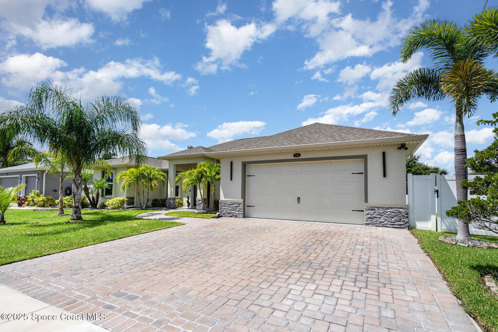 Only fourteen families get to call Hawks Ridge home. Behind the gates of this boutique enclave, this 2020 build offers privacy and ease across 4 bedrooms and 2,244 sq ft. Sunlit open plan and custom kitchen with quartz counters, island, soft close drawers, pull outs in the cabinets, and stainless steel appliances. Primary suite with two custom walk in closets, frameless shower, extended double vanity, and brand new carpet. Crown molding and custom laminate in main living and dining. Middle bedroom also has a walk in closet. Outdoor living shines on the oversized 34'6'' x 18' covered and screened porch. Fully fenced yard with a storage shed. Includes accordion hurricane shutters, Cat 5 patio screens, whole home water filtration, and exterior cameras with two floodlight units plus a Ring. Close to shopping, dining, parks, beaches, and key employers. Rarely available and ready for you.