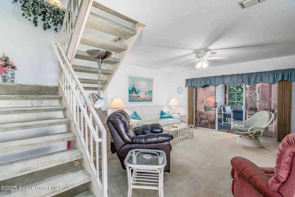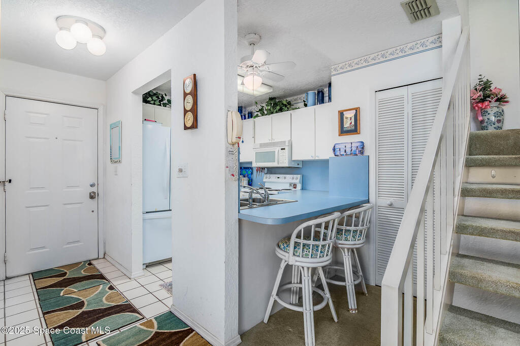 Welcome to your dream coastal retreat! Nestled in the private, gated community of Villages of Seaport, this charming END UNIT townhome features 2 upstairs bedrooms and 2.5-bath offering the perfect blend of comfort, convenience, and beachside living. Lush tropical landscaping and palm-lined streets lead you straight to the Atlantic Ocean, with private beach access just moments from your door. Inside, natural sunlight fills the home, highlighting thoughtful features like the bonus room and expanded dining area. Recent upgrades include a new A/C unit, hot water heater, dryer, and garbage disposal. Enjoy resort-style amenities including multiple pools, tennis, pickleball, racquetball, basketball courts, clubhouse, fitness center, and more--all with water, sewer, cable, and internet included in the HOA fee. Best of all, you're just minutes from shopping, dining, cruise terminals, and less than an hour to Orlando attractions. Don't miss your chance to own a slice of coastal paradise