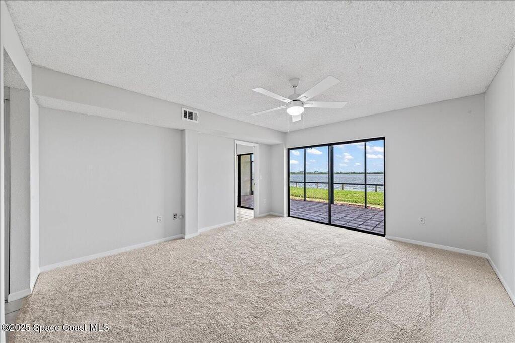 STILL TIME TO CLOSE BEFORE CHRISTMAS & CLAIM HOMESTEAD EXEMPTION. DIRECT WATERFRONT! Welcome home to Merritt Towers, a sought after waterfront community within walking distance to mall, dining, bank, Veterans Memorial Park, & new Health First hospital under construction. Centrally located on the Space Coast. Well funded & maintained association with approved 2026 budget the monthly condo fee will be 635.00. Active social committee. Water aerobics, cards, pickleball, 2 pools, sauna, hot tub, tennis, dog park! Enjoy the sunrise on your screened balcony. Watch dolphins play, step outside for the next rocket launch! So much to do. New paint & carpet in bedrooms. Kitchen features granite countertops and tiled backsplash with loads of cabinets. Waterfront primary suite with double vanities, custom built in walk in closet. Mirrored entry shows the shimmer of water from the moment you open the door. EZ commute to SpaceX, Blue Origin, NASA, Port Cruise Ships, Beaches, OIA, Cocoa Village.