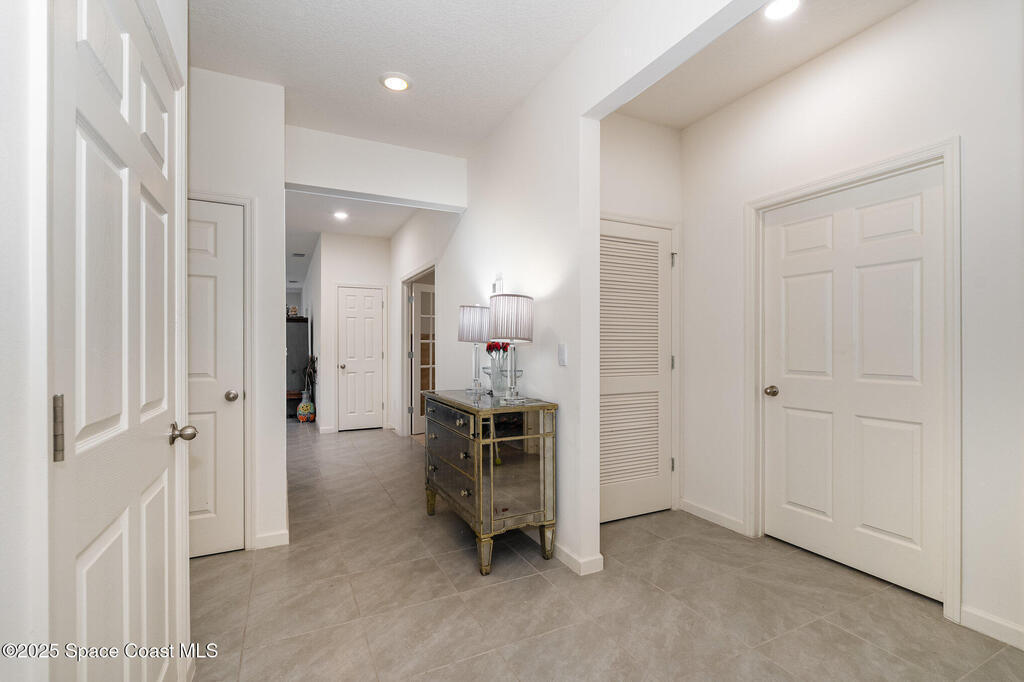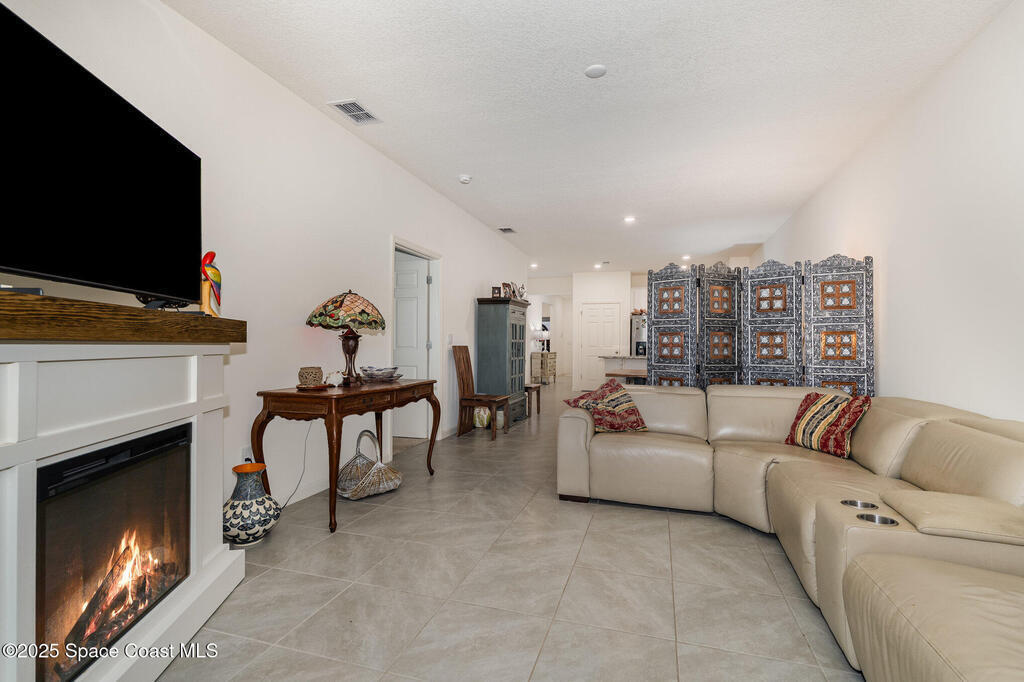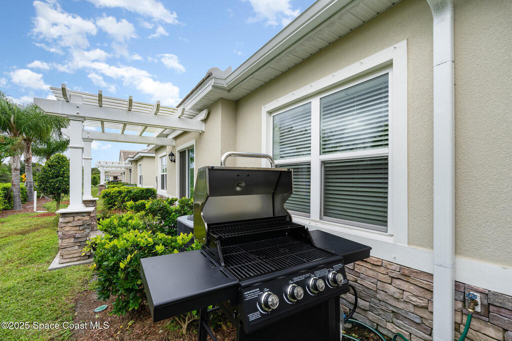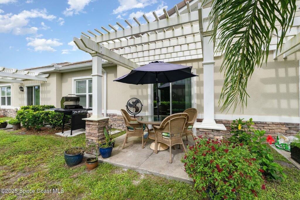 Like-New Golf Course Home in Mims! This nearly new single-story home offers stylish finishes and modern upgrades throughout. Featuring a tile roof, open-concept floor plan, and bright white kitchen with granite countertops, stainless steel appliances, pantry, and a large breakfast bar perfect for gatherings. The split-bedroom layout includes a versatile den/office with French doors. Upgrades include a whole-home water purification system and DR Horton Smart Home technology. Outdoors, enjoy a concrete patio with white pergola--ideal for relaxing or entertaining. Lived in less than a year, the seller is relocating, making this move-in ready gem available for its next owner. Conveniently located on the golf course and just steps from neighborhood dining and the clubhouse bar.