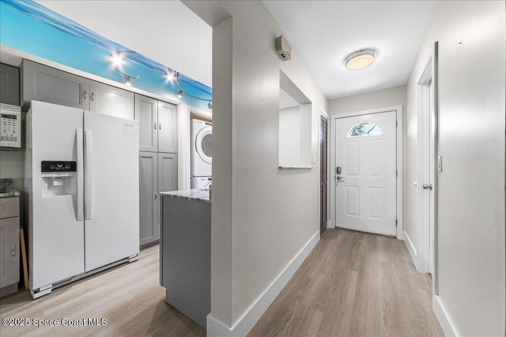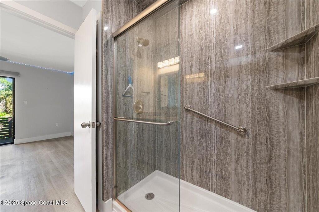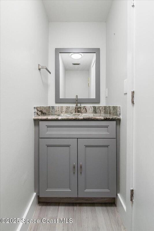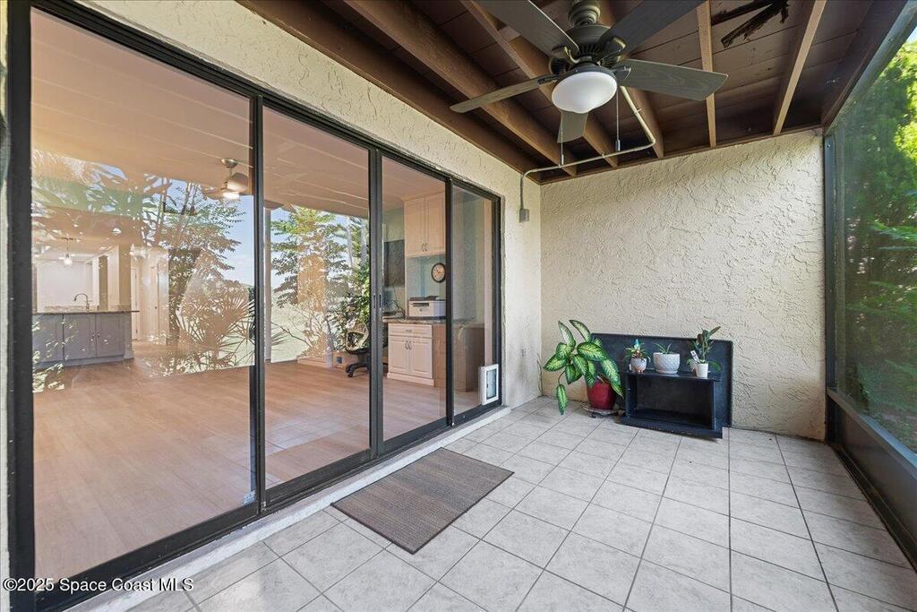 PRICED ADJUSTED TO SELL!!! MOVE IN READY AND perfectly upgraded sanctuary in the heart of Titusville. Get ready to be WOWED by the redesigned Kitchen which makes the best use of the space and the most storage possible while including a laundry area (with washer & dryer) IN the unit. Upstairs find two Primary Suites, each with recently updated and gorgeous en Suite baths. Each bedroom has a private balcony & new hardware. lighting & fans. New LVP flooring throughout. New A/C in 2023. The bedrooms have closet systems and the custom built in Murphy Bed in the guest bedroom conveys! There is a custom built in in the Great Room perfect for Work From Home, Crafting, Toy Storage and/or Entertainment Center for TV, gaming & computer. The 2 rear patios overlook green space and the screen enclosed patio is the perfect place for morning coffee and evening sunsets. Reach out NOW to schedule a private tour of this one of a kind Titusville condo and make it yours. SOME PHOTOS VIRTUALLY STAGED