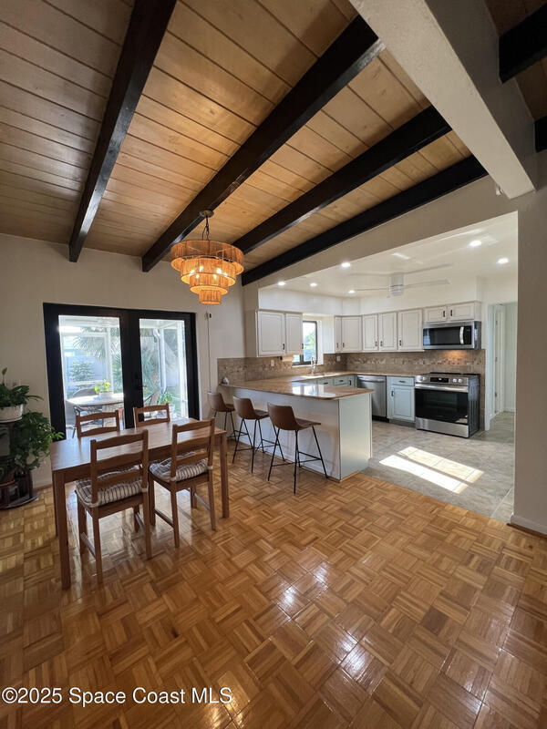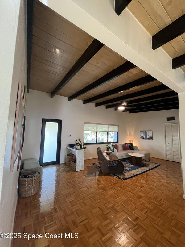 Coastal Living & Modern Comfort - Newly Renovated Home Adjacent to the Beach!Beautifully renovated 3-bedroom, 3-bathroom single-family home located in a peaceful Indialantic neighborhood. Fully updated in 2024, this 1,352 sq ft home offers modern comforts just a short 5-minute walk to the beach.Step inside to find tall ceilings with exposed wood beams, rich hardwood floors throughout, and an airy open layout. The kitchen features brand-new appliances, complemented by a new AC unit.The 0.23-acre lot offers plenty of room. Landscaping service is included and stays green year-round thanks to a full sprinkler system. The yard includes avocado and mango saplings, a flowering royal poinciana, and vibrant bougainvillea. A screened-in back patio with a ceiling fan provides breezy, bug-free comfort.Located in a quiet and safe neighborhood, you'll enjoy the proximity to schools as well as Downtown Melbourne and Eau Gallie, both just 10 minutes away.