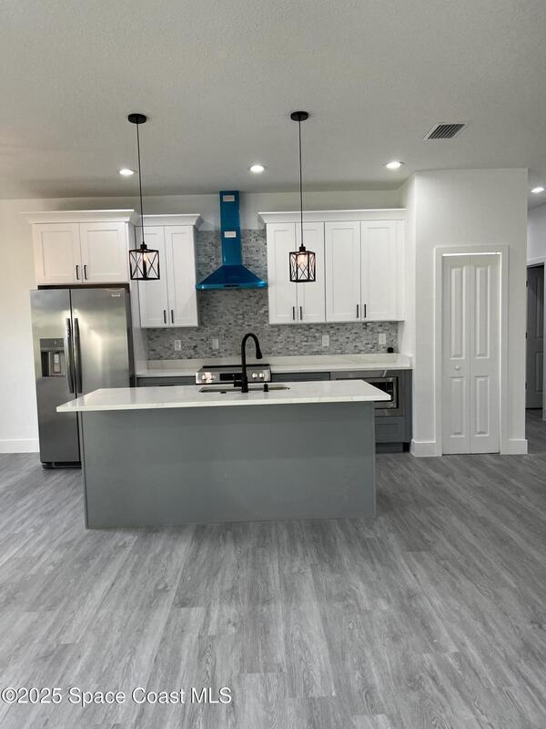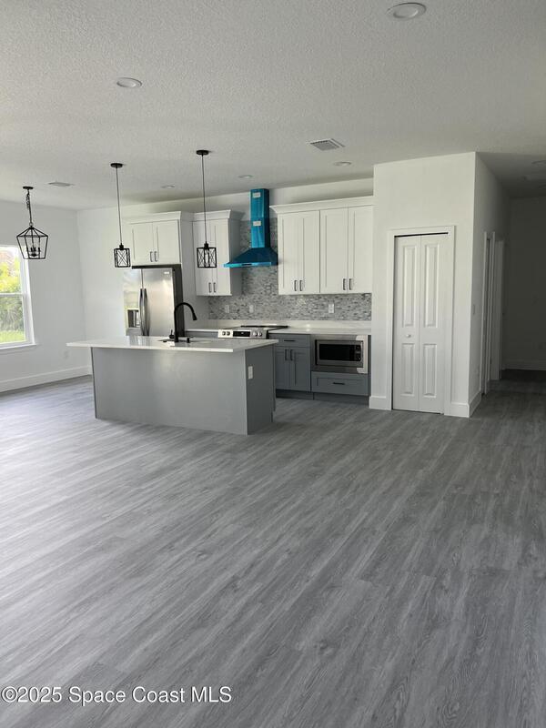 Oversized 0.28-acre corner lot with plenty of space to build your dream pool. This brand-new 4BR/2BA home is built with quality finishes: impact windows/doors, 9'4'' ceilings, recessed lighting, Laminate vinyl plank waterproof flooring, quartz countertops, water-resistant kitchen surfaces, and stainless steel appliances (refrigerator included). Bathrooms showcase floor-to-ceiling tile with glass door. Extras include a soft water system, extra closets, and a motorized garage opener. Open-concept design filled with natural light. New home warranty included -- schedule your private showing today!
