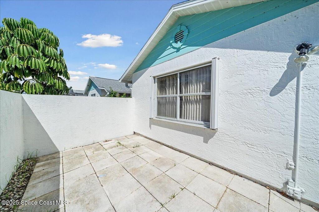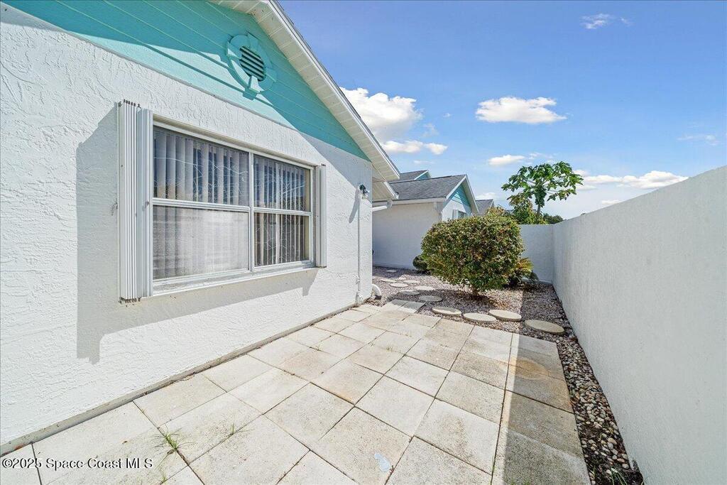 Welcome to Suntree & maintenance free living. Roof replacement, exterior paint, landscaping included in HOA fees (under $400 a month) with a community pool and loads of future fun! This concrete block 2 bedroom, 2 bath home - priced below market - has bedrooms with baths on opposing sides of the home! Open floor plan, big closets, 1 car garage, and enclosed porch. Beautiful private stonewall patio with room for pets. All ready for your personal stamp and style!