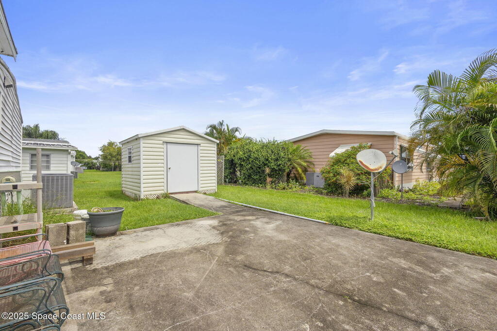 Live the Florida dream in a vibrant 55+ community--where comfort, convenience, and lifestyle come together!This gem offers features you won't often find, like an outside shed plus a spacious utility room that not only holds your washer and dryer but also gives you plenty of room for a workshop or hobby space. The enclosed front patio is perfect for sipping your morning coffee, hosting a card game with friends, or simply enjoying a little extra living space.Inside, you'll find thoughtful touches like a master bath with an easy-access shower, while the guest bathroom includes a relaxing tub/shower combo--ideal when you want to soak and unwind. Best part? No lot rent--you own the land!With a community pool, shuffleboard, and a location just minutes from shopping, dining, the post office, and only 15 minutes to the beach, this home checks all the boxes. Plus, big-ticket updates are already done--roof (2018) but may need a bit of updating so seller will contribute at close and A/C (2020)