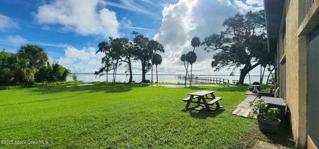 Ground floor unit is spacious and open. Direct river view and nice screened porch. Tile throughout living area. Master suite has a shower, bath 2 tub/shower. Complex has a common dock on the Indian River and swimming pool. Great location and shows very well. The association requires application and approval.