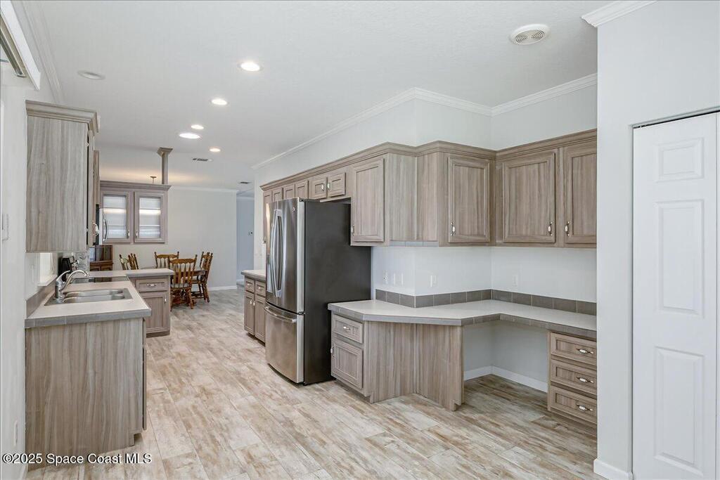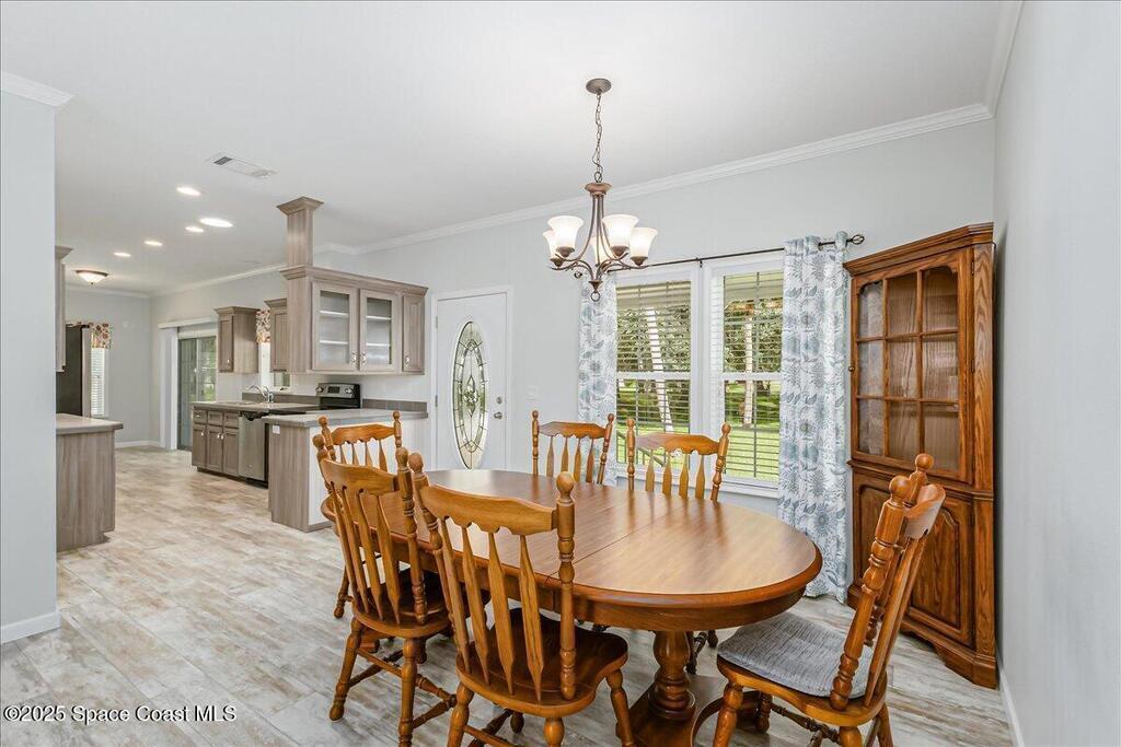 Discover this inviting 3 bedroom, 2 bath mobile home in the desirable Port Malabar Holiday Park community in Palm Bay, Florida. Step inside to find durable vinyl flooring throughout the living areas, paired with cozy carpeting in the bedrooms for added comfort. The spacious kitchen shines with modern stainless steel appliances, perfect for meal prep, and includes a charming breakfast nook plus a dedicated dining room area for gatherings.Outside, a large storage shed offers ample space, enhanced by a practical loft area for extra organization. But the true highlight is the premium lot on a quiet cul-de-sac, overlooking a expansive oak hammock that provides natural beauty and privacy. Relax on the screened-in deck, where you can savor the serene views and fresh air without the annoyance of insects!This home combines functionality with a peaceful setting, ideal for relaxed Florida living. Schedule your viewing today!