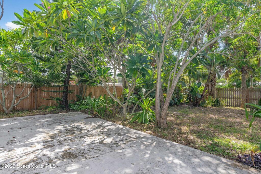 Welcome to your beachside family home! Step inside to an updated kitchen, perfect for family meals and entertaining. The home features a metal roof and hurricane-rated windows, providing peace of mind year-round. Enjoy Florida's sunshine from the screened-in back porch or host gatherings on the expansive additional patio. Outdoors, you'll find a spacious shed with electricity, ideal for hobbies or extra storage. The lush yard is shaded with mature trees, (See below) while the paver driveway and side parking pad offer room for even a small boat. In the back, a serene waterway invites you to paddle board, fish, or simply take in the natural beauty of your surroundings. Just minutes from the beach, this home has the laid-back charm of coastal living. Various trees include, a verity of palms, maringa, fig, birds of paradise, mulberry, banana, coconut, strawberry, spinach, gardenia, multiple colored plumeria's.