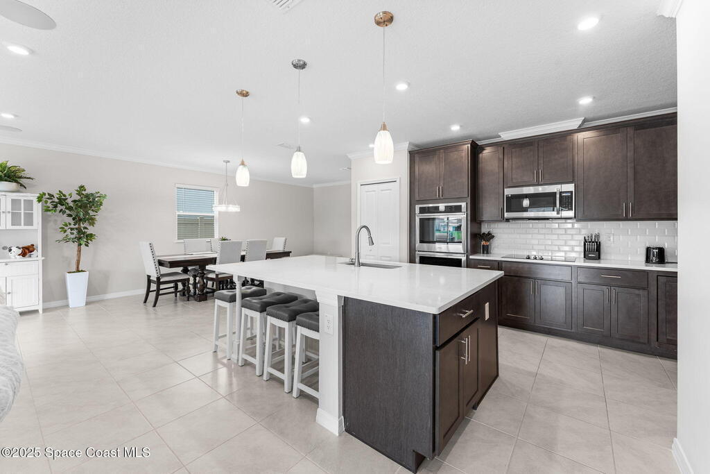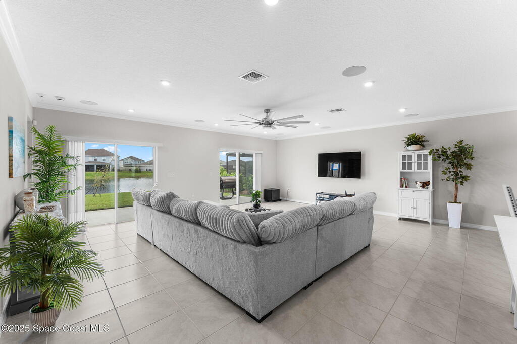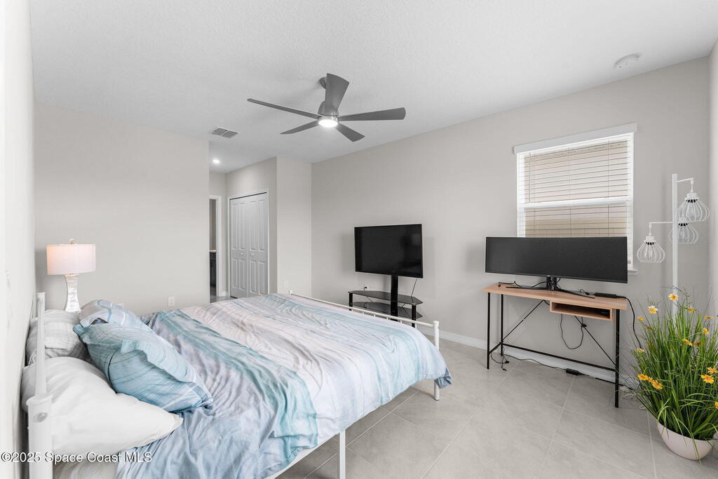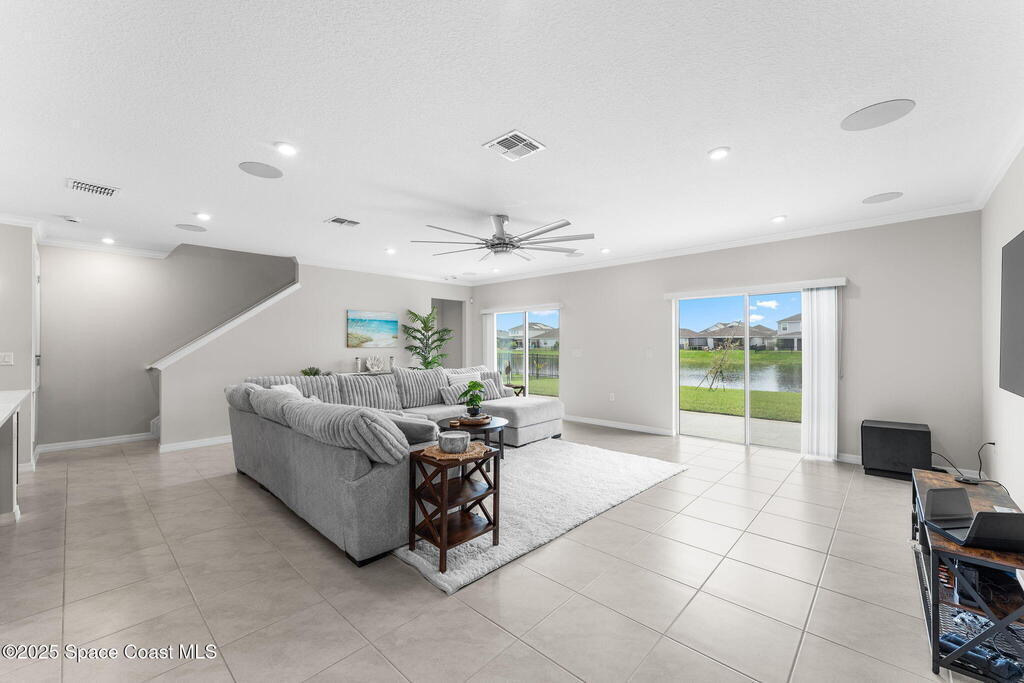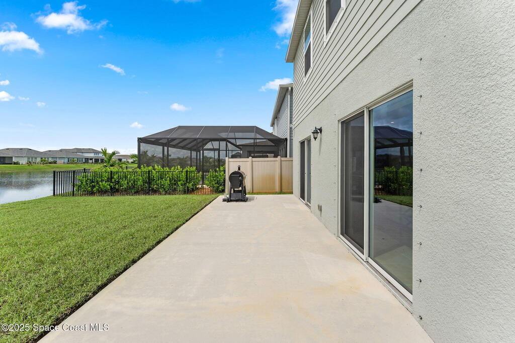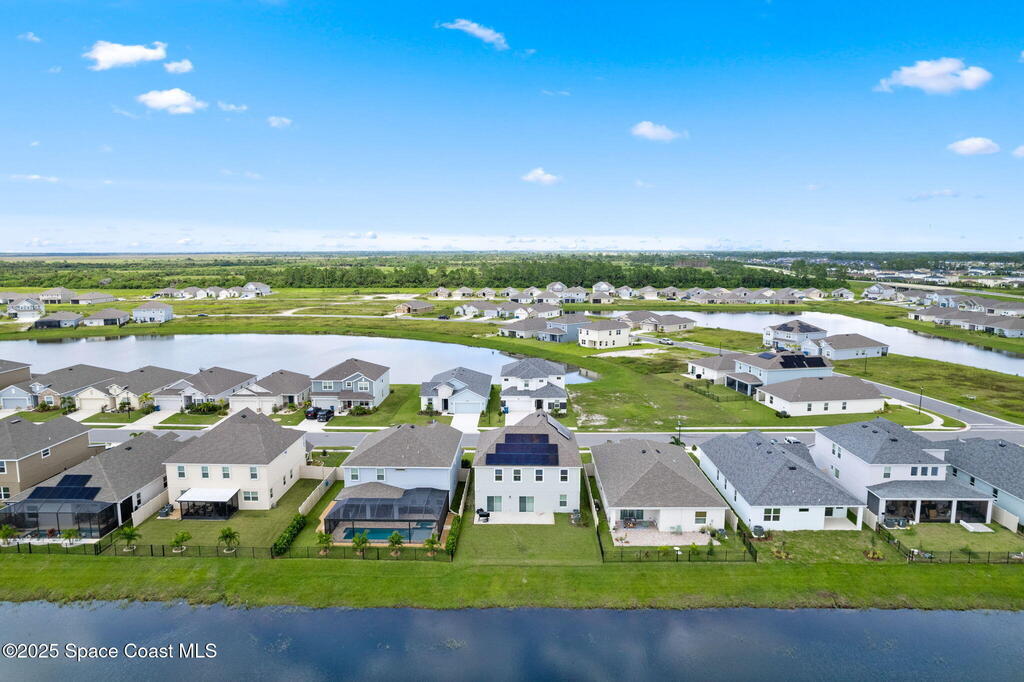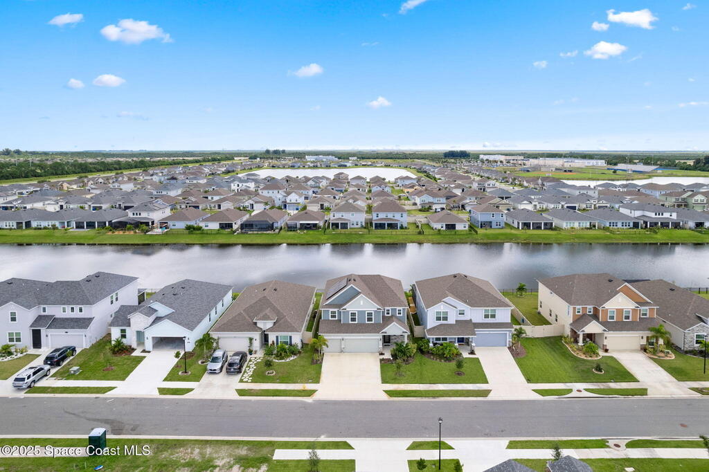 Step into the WOW FACTOR - a 2023-built lakefront stunner in Palm Bay's gated enclave. This 6-bedroom, 4.5-bath, 2-story home has space for everyone plus a 3-car garage to match. From the covered front porch to the open-concept island kitchen with quartz counters and surround sound system, every detail is dialed for modern living. Upstairs, retreat to your primary suite with a spa-worthy walk-in shower, walk-in closet, and laundry just steps away (yes, laundry upstairs-game changer!). Bonus: a full guest suite downstairs for visitors or multi-gen living. Tile and carpet flooring, a full security system, manual storm shutters, and a backyard lake view worth lingering over round out the perks. Big family? Big dreams? Big vibes? This one's got you!