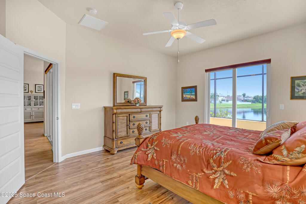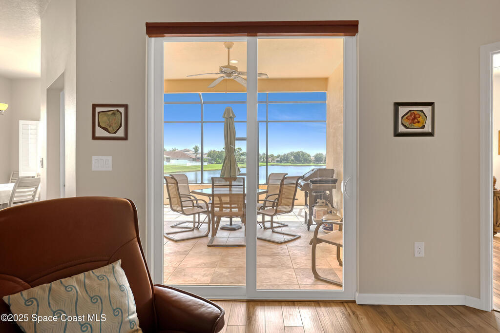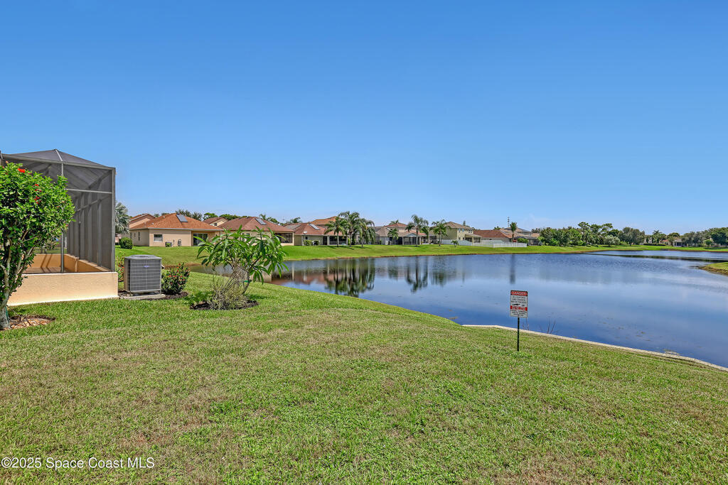 ***Save Big: 1% lender credit (based on loan amount) toward closing costs or rate buy-down with seller's preferred lender. Ask for details!***This waterfront home is exceptional on every level! Impact Glass on all doors and windows. Alabaster sills. Luxury Vinyl Plank flooring throughout. 10-ft ceilings. Solid Core interior doors. Premium interior wall insulation. Premium cabinets, and drawers, with soft close hinges. Plantation shutters in the kitchen, office area, BRs 2 & 3, master bath and bath #2. Remote controlled shades cover the sliding doors to the Lani from the living-RM and master-BR, as well as the transom window. The master bath has a double vanity and an oversized walk-in shower with a built-in seat. An oversized screened in extended lanai looks east across the lake offering beautiful sunrises and the comfort of shade from the afternoon sun. New AC in 2023, owned Solar Hot water heater. Sold furnished or unfurnished. All high-end furniture, and art, included at no cost.