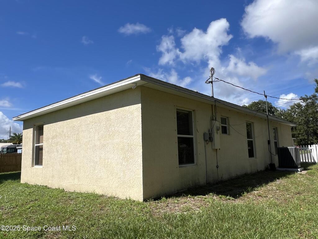 Tucked away on a quiet street in South Merritt Island, this move-in ready home offers recent updates and plenty of space. A new white vinyl fence (2025) adds curb appeal and privacy, while the HVAC was replaced in May 2025 for peace of mind. Inside you'll find fresh flooring, an open living area with natural light, a spacious kitchen with solid wood cabinets, and a split plan with comfortable bedrooms. The primary suite features a soaking tub, walk-in shower, and glass block window for added light. With no HOA, you'll have the freedom to park a boat or trailer, and the fenced yard is perfect for pets, entertaining, or simply relaxing under Florida skies. Ideally located near top schools, Cocoa Village, beaches, and rocket launches, this home is a strong choice for first-time buyers, investors, or anyone looking for a low-maintenance Merritt Island lifestyle.