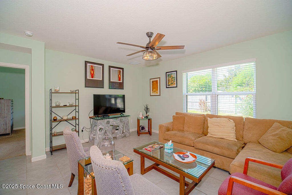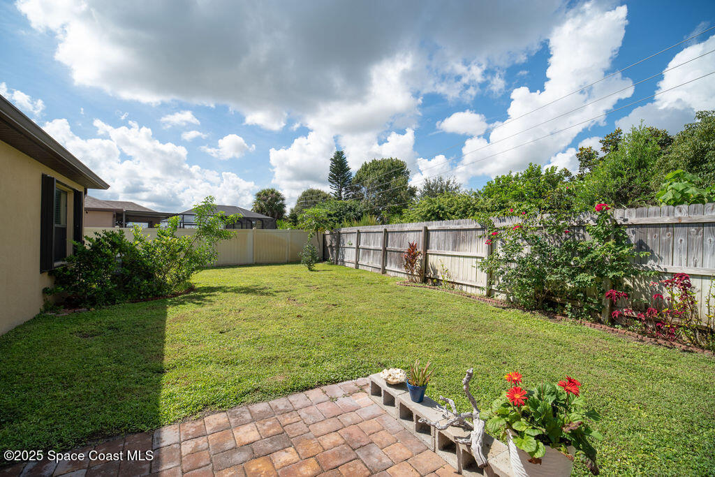 Welcome to 7386 Amethyst Avenue, a stunning move-in ready home located in the highly desirable Crystal Bay community of Grant/Valkaria, Florida. This newer construction residence features the popular Cali floorplan, offering a spacious single-story layout with four bedrooms, two full bathrooms, and a two-car garage. The heart of the home is a large kitchen island that seamlessly connects to the dining area and living room, creating an open-concept space perfect for entertaining or everyday living. The owner's suite is a true retreat, complete with a walk-in shower, double vanity, generous walk-in closet, and a separate linen closet for added convenience. Stunning expanded pavered drive & patio! The home is outfitted with stainless steel appliances, window blinds, and smart home technology through America's Smart Home system, allowing you to control key features from your phone with ease. Not to mention a 440 plug in the garage for EV charging!