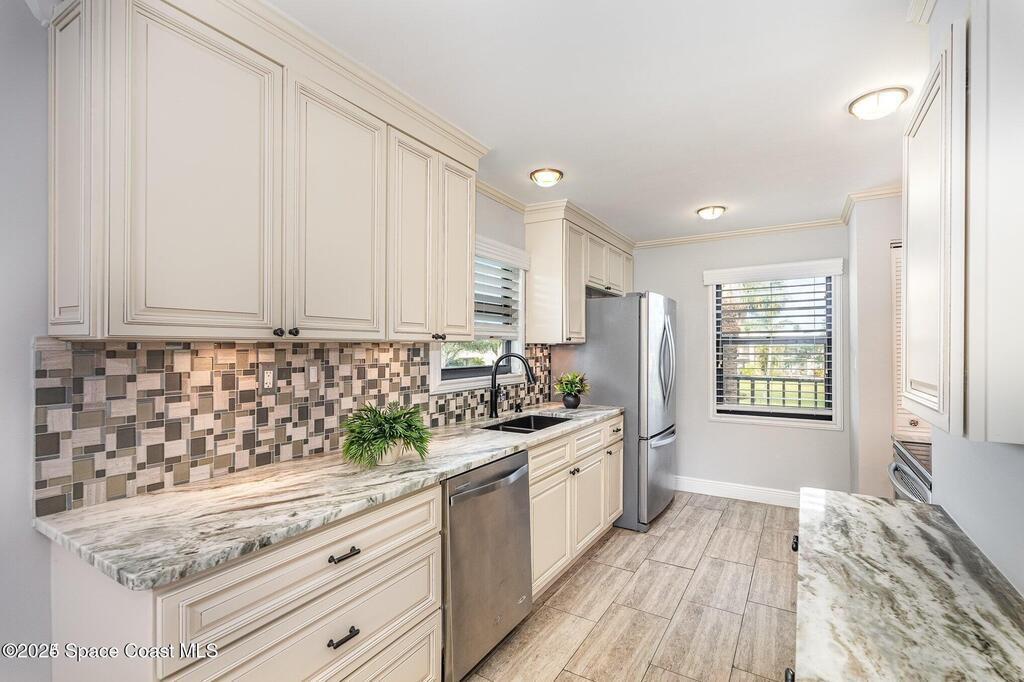 Discover your dream 2-bedroom, 2-bath condo in the highly sought-after The Oaks Condominiums, located in the heart of Cape Canaveral, Florida. This stunning end-unit offers an abundance of natural light and spectacular views, with a fresh, modern touch throughout. Recently painted, the condo boasts an updated atmosphere, and a brand-new air conditioner (installed March 2024) ensures your comfort year-round. Step onto your private balcony overlooking the largest heated pool in the atrium, perfect for soaking up the Florida sun. From the front walkway, enjoy front-row seats to thrilling rocket launches and watch cruise ships depart from Port Canaveral. The riverfront complex offers exciting outdoor activities like kayaking and paddleboarding, with serene sunsets at the gazebo--where dolphins and manatees often make an appearance. This move-in-ready condo is designed with luxury and convenience in mind: porcelain tile in the kitchen and baths, bamboo flooring in the living.