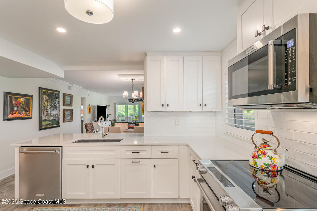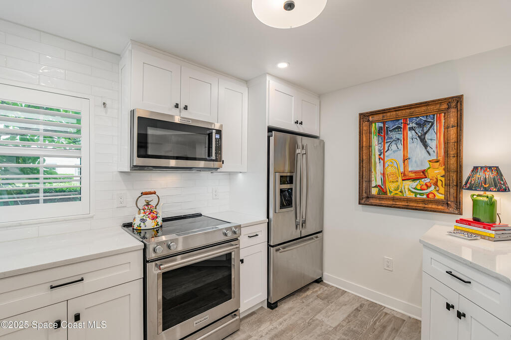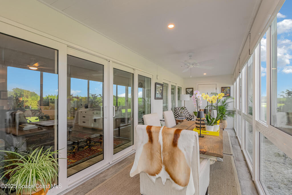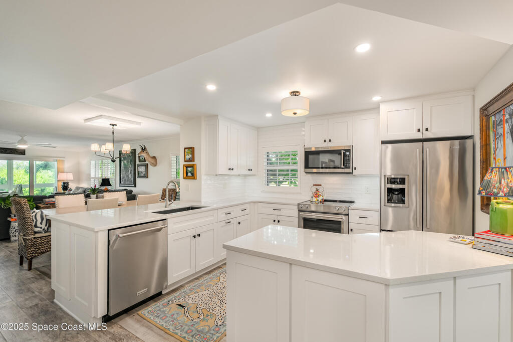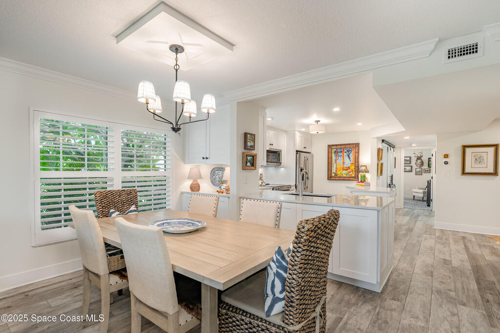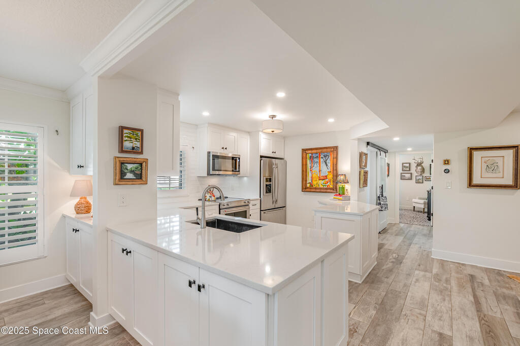 Discover the pinnacle of Florida living in this direct riverfront,1st-floor, end unit condo just 2 blocks from the ocean & walkable to downtown Cocoa Beach. Meticulously renovated with Southern Living charm, this immaculate 3-bed, 2-bath offers 1,736 sq ft plus an additional 200 sq ft finished air-conditioned patio overlooking the intercoastal. Enjoy sunsets and tranquil water views from your private patio. Fully remodeled including a Gourmet kitchen, spa-like baths, built-in bar, abundant natural light, open concept living. Brand new AC w/UV Light & air purifier, tankless water heater, impact hurricane rated windows & shutters. Harbor Isles features 3 pools, multiple tennis courts, clubhouse w/ fitness center, billiards, riverfront boardwalk, boat/kayak launch, RV/boat storage & more. Move-in ready, Furnished, and Designed for comfort & style. Private/deeded one car garage included & so much more. Hoa includes water, sewer, trash, TV, Internet, Exterior maintenance & Insurance.
