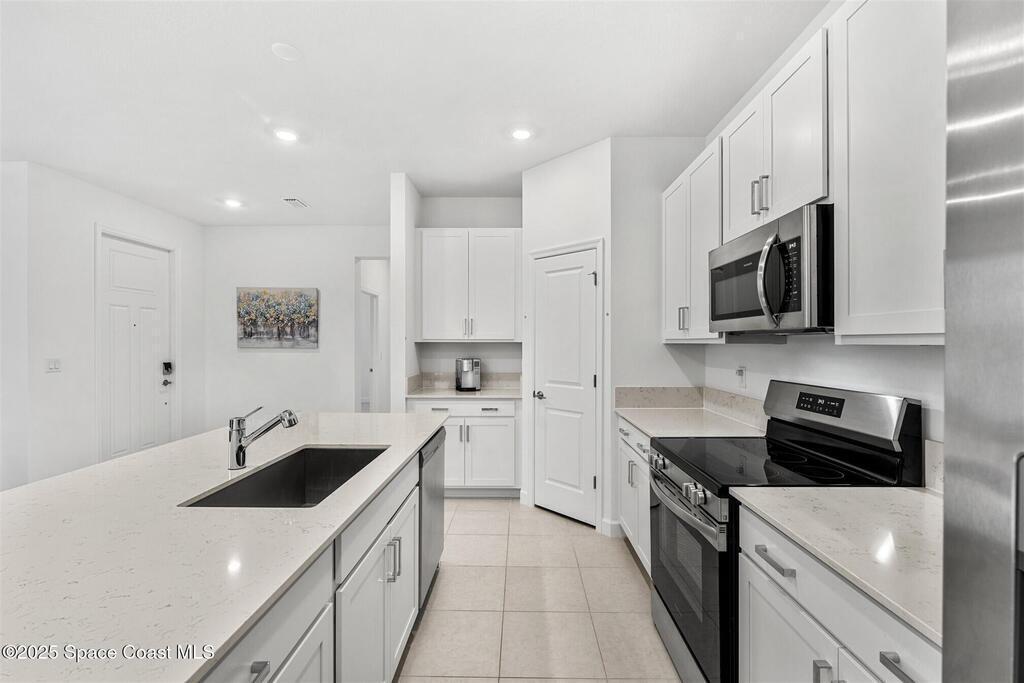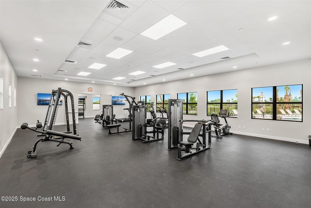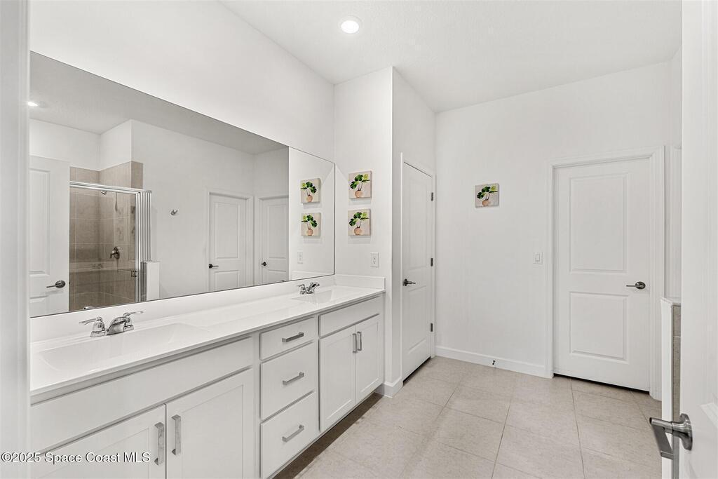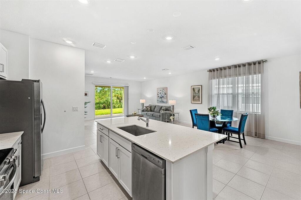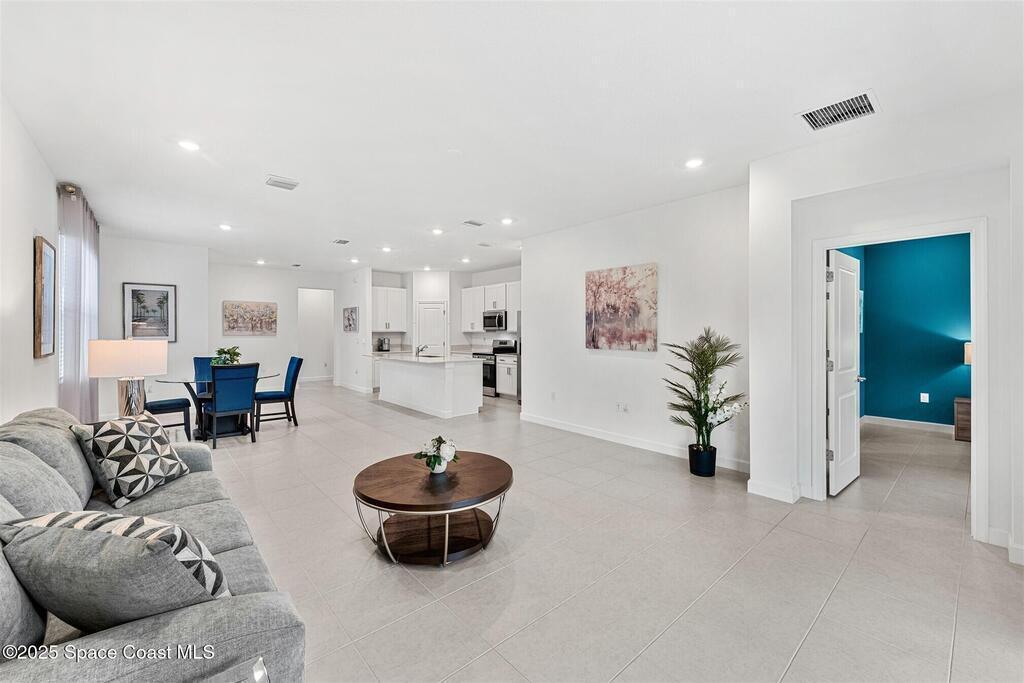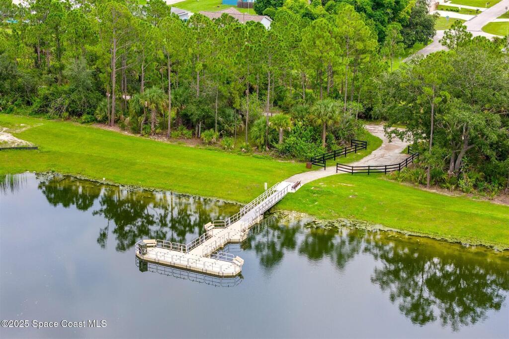 Must See, less than one year old, 1794 sq ft, 3 bedroom plus flex area, 2 bath, 2 car garage home in The Timbers at Everland, the sought after 55+ resort style community in Northwest Palm Bay! This 2024 built meticulous home backs up to a lush private conservation area and includes IMPACT WINDOWS and SLIDER, which make hurricane season stress free! Must have features including white kitchen cabinets with marble look quartz counters, tile throughout, and window blinds throughout are included in this beautiful home! All furnishings available for an additional $5,000. Unwind at the brand new private clubhouse, featuring a large heated pool and spa, fitness room, aerobics studio, card room, dog park, putting green, fishing dock, tennis and pickle ball courts, bocce, and even a movie theater! And the HOA covers your home's lawn care! Short car ride to Atlantic beaches! Close to shopping and dining. One hour drive to MCO, cruise port!