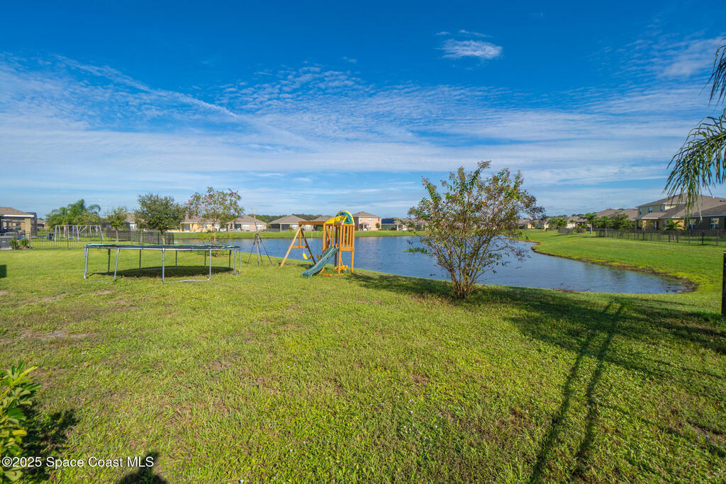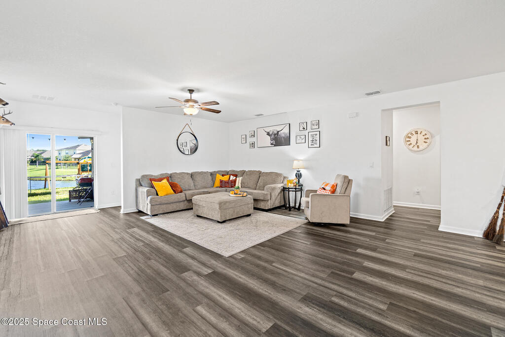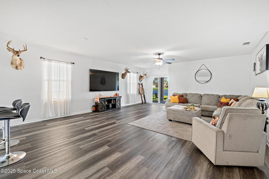 Waterfront home in the primer Indian River Preserve golf course community! This home features 1735 sqft with 3 bedrooms, 2 bathrooms, 2 car garage, on a waterfront lot. Inside features stainless steel appliances, vinyl flooring in the living area, and oversized master bedroom. The outside features a covered patio overlooking pond, perfect for enjoying the sunrises and wildlife this community is known for. You can enjoy everything this community has to offer from the golf course, walking paths, club house, and fishing from your backyard.
