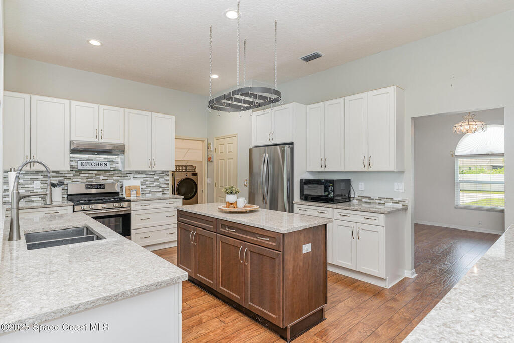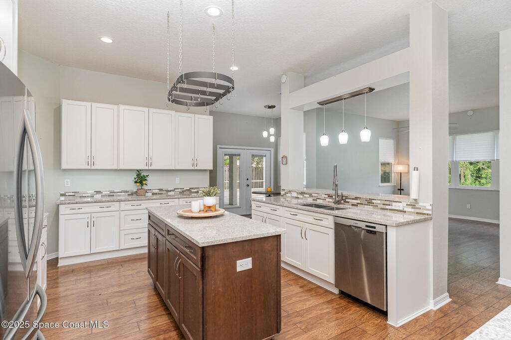 Welcome to 283 Fluvia Ave, a beautifully updated home perfectly situated on a quiet cul-de-sac in Palm Bay. This thoughtfully designed residence features a desirable split floor plan, offering comfort and privacy for the whole family. The renovated kitchen is a showpiece with its large center island, breakfast bar, and cozy nook--ideal for casual meals or morning coffee. Flowing seamlessly from the kitchen, the spacious living and dining rooms create the perfect setting for entertaining or relaxing at home. Step outside to your private backyard retreat, where mature trees and a wooded backdrop provide peace and seclusion. Ideally located just minutes from shopping, dining, and easy interstate access, this home blends modern updates with convenience. With a functional layout and serene setting, 283 Fluvia Ave is move-in ready and waiting for you to make it your own.